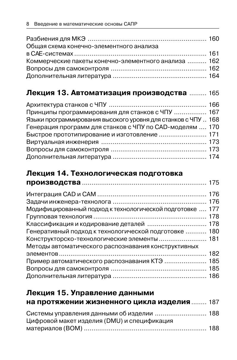 Книга представляет собой краткое изложение курса лекций «Введение в математические основы САПР», организованного Новосибирским государственным университетом при поддержке компании ЛЕДАС. Лекции рассчитаны на студентов старших курсов, специализирующихся в области прикладной математики, информатики и информационных технологий. Излагаемый материал может быть полезен разработчикам САПР, ученым, инженерам, а также всем интересующимся современными тенденциями в области автоматизации промышленных процессов.