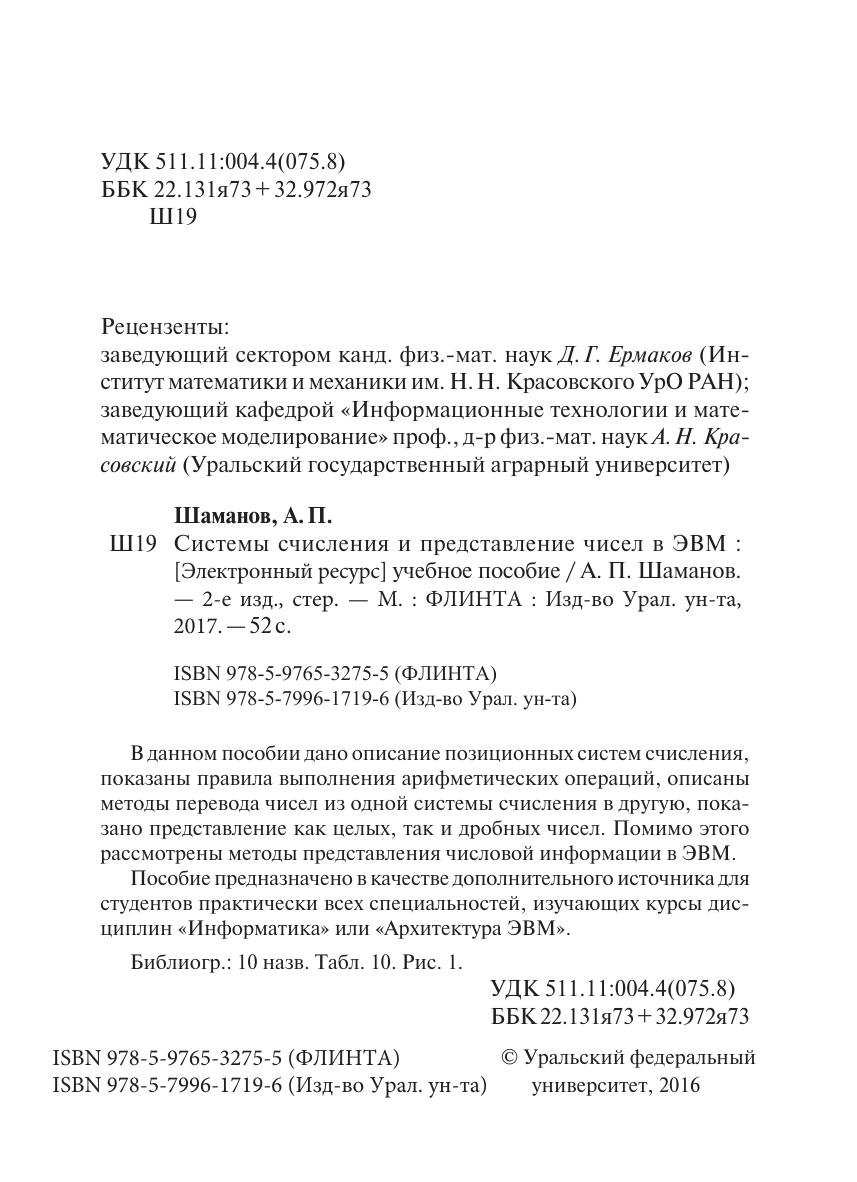 В данном пособии дано описание позиционных систем счисления, показаны правила выполнения арифметических операций, описаны методы перевода чисел из одной системы счисления в другую, показано представление как целых, так и дробных чисел. Помимо этого рассмотрены методы представления числовой информации в ЭВМ. Пособие предназначено в качестве дополнительного источника для студентов практически всех специальностей, изучающих курсы дисциплин «Информатика» или «Архитектура ЭВМ».