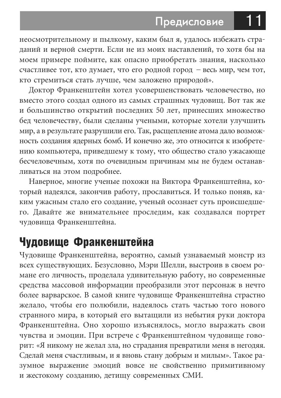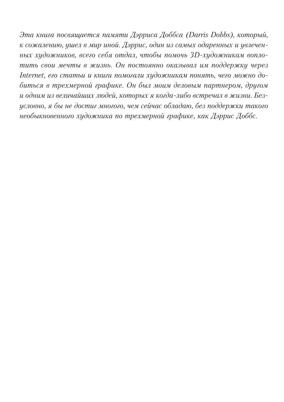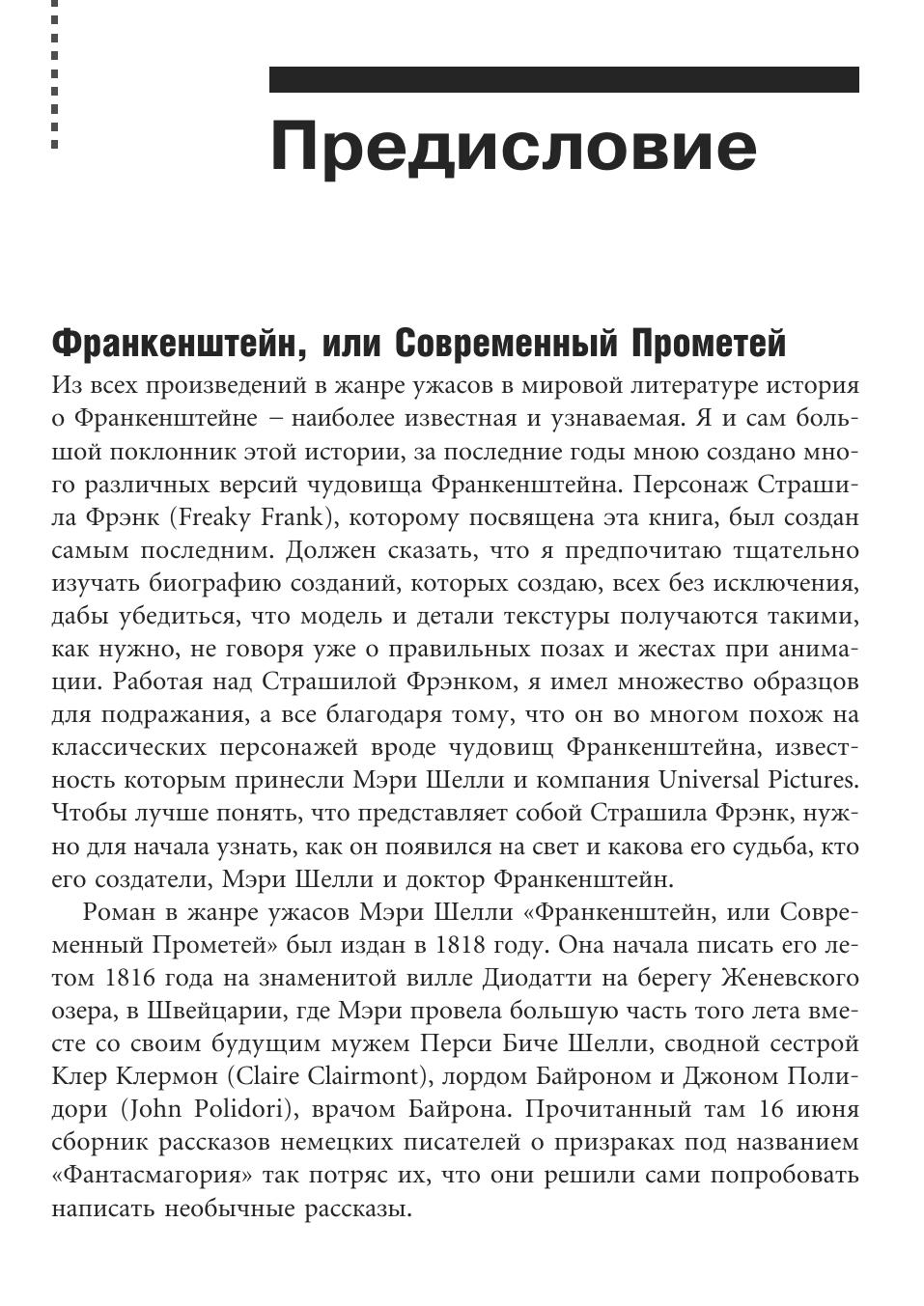 В книге подробно рассматривается создание текстур для трехмерных персонажей на примере головы ужасного монстра Страшилы Фрэнка, который был использован в широко известном 3D-мультфильме и отличается особой фотореалистичностью. Автор описывает уникальные, разработанные им самим методы, которые позволяют добиться потрясающей убедительности и детальности текстур, среди них – использование слоев и различных режимов смешивания, применение разнообразных кистей для создания как формообразующих, так и мельчайших элементов текстуры. Все описанные методы применяются для создания текстур рельефа, зеркального и диффузного отражений. Читателю предстоит не механически повторить представленные в книге примеры, а научиться творчески перерабатывать свои замыслы в художественное воплощение. Проект, описываемый в книге, полностью выполнен в Photoshop, что позволяет воспроизвести его практически любому пользователю, знакомому с данной программой. Результаты работы могут быть использованы в 3ds max, Maya, LightWave или другом пакете трехмерной графики.