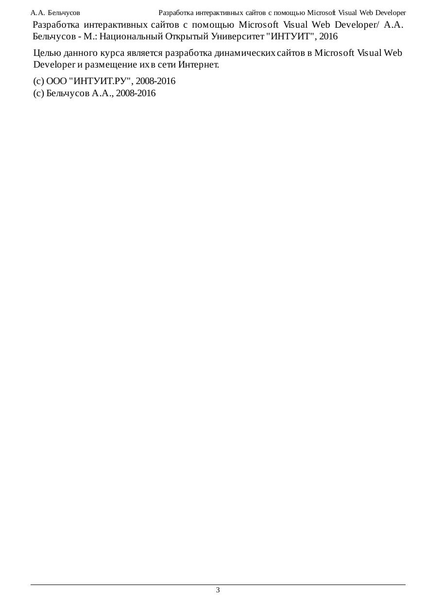Целью данного курса является разработка динамических сайтов в Microsoft Visual Web Developer и размещение их в сети Интернет.