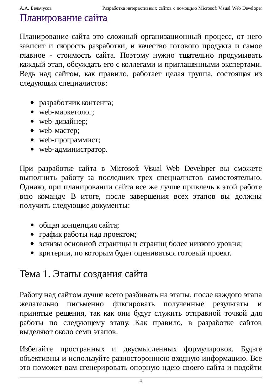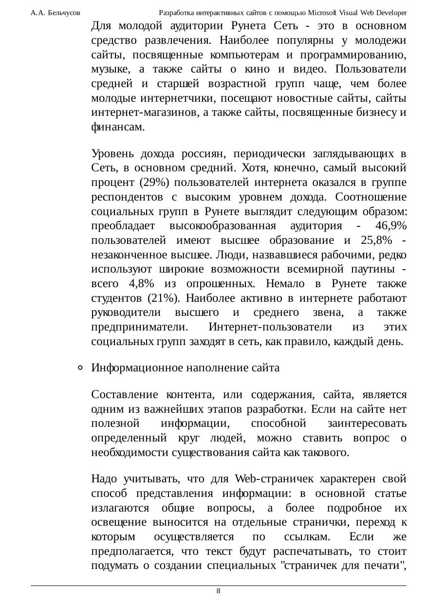 Разработка интерактивных сайтов с помощью Microsoft Visual Web Developer