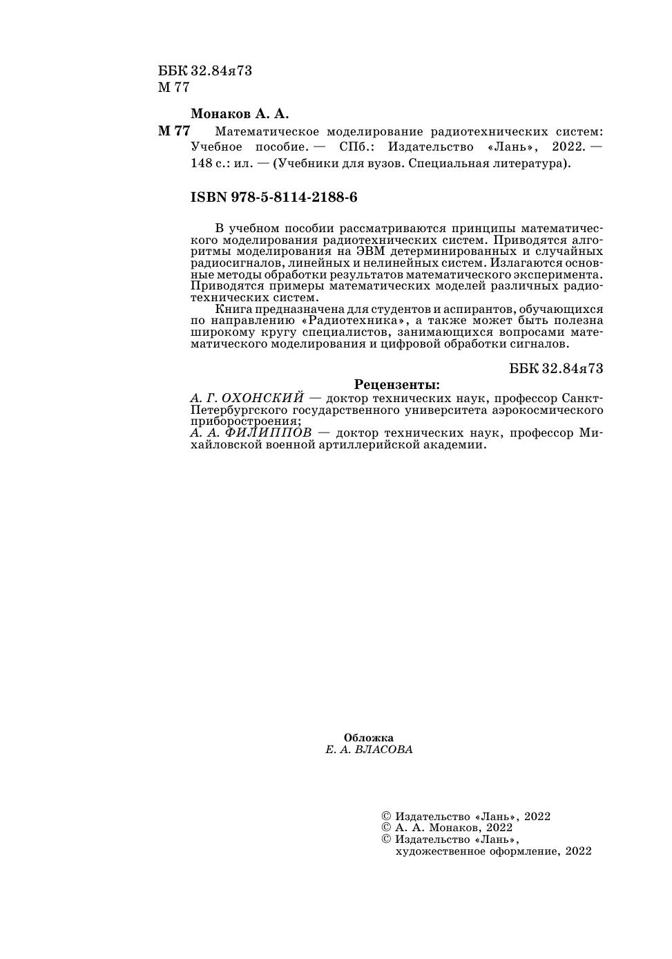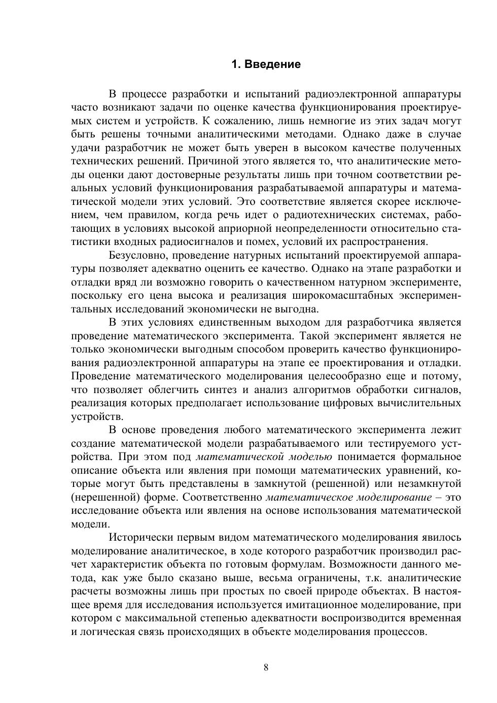 В учебном пособии рассматриваются принципы математического моделирования радиотехнических систем. Приводятся алгоритмы моделирования на ЭВМ детерминированных и случайных радиосигналов, линейных и нелинейных систем. Излагаются основные методы обработки результатов математического эксперимента. Приводятся примеры математических моделей различных радиотехнических систем. Книга предназначена для студентов и аспирантов, обучающихся по направлению «Радиотехника», а также может быть полезна широкому кругу специалистов, занимающихся вопросами математического моделирования и цифровой обработки сигналов.