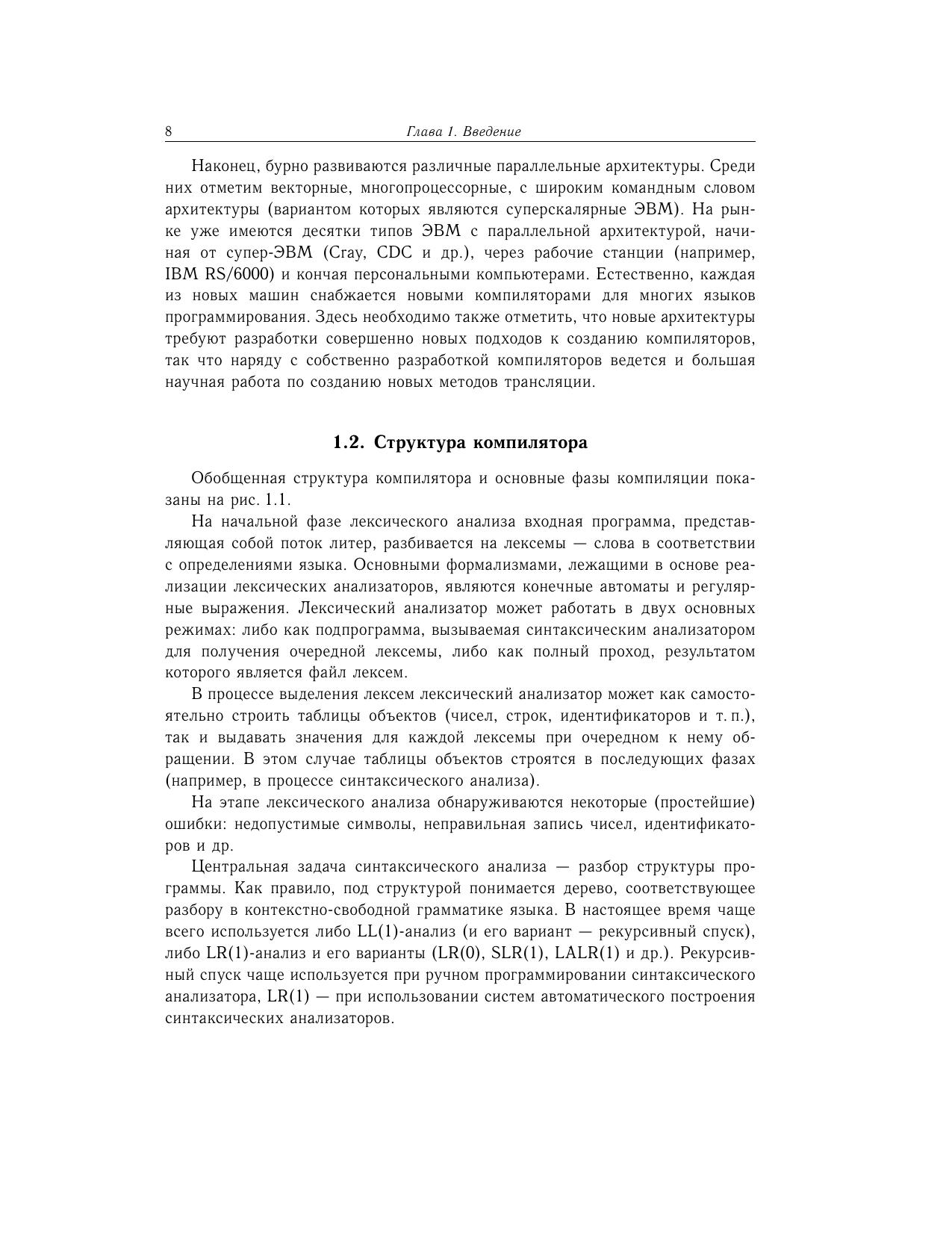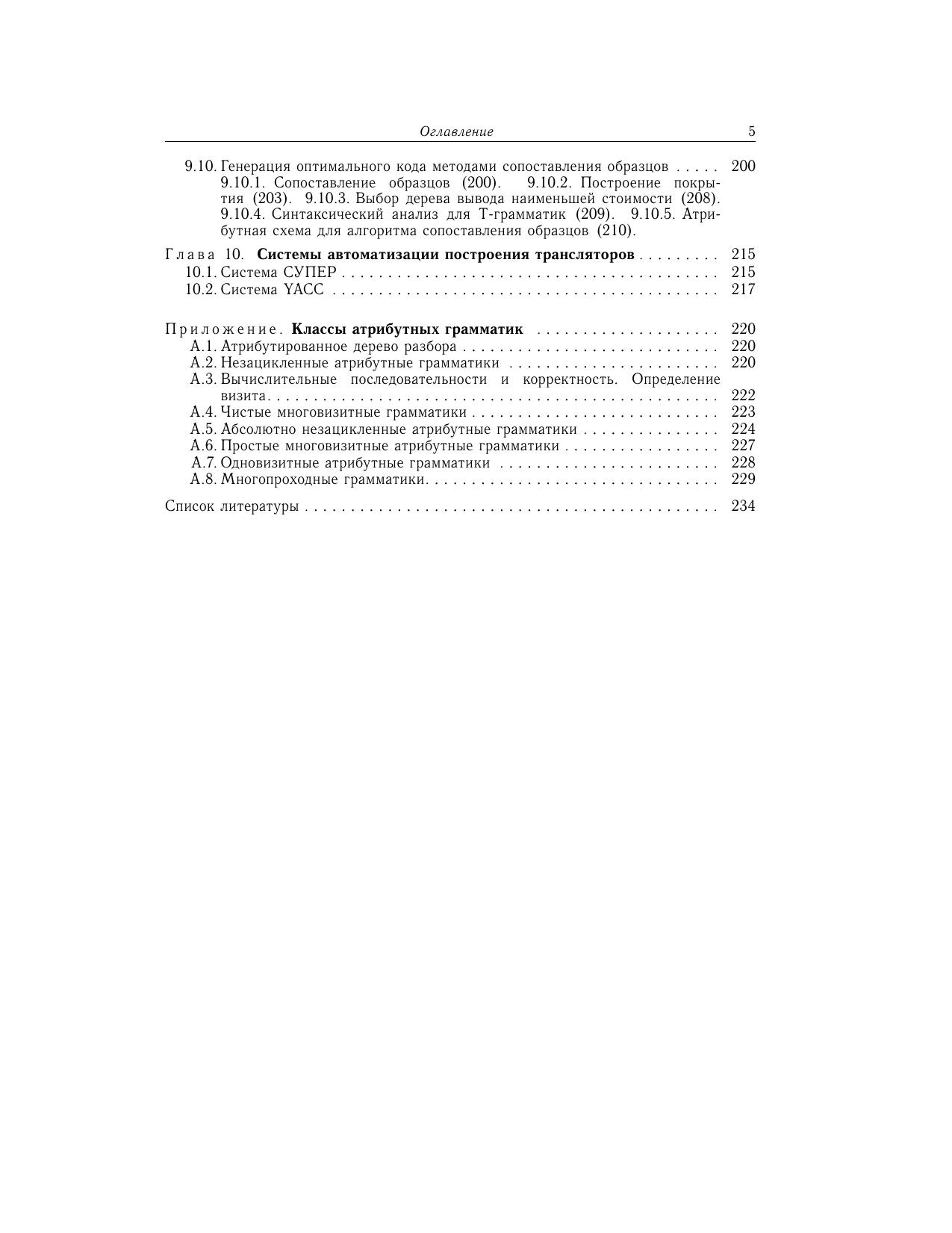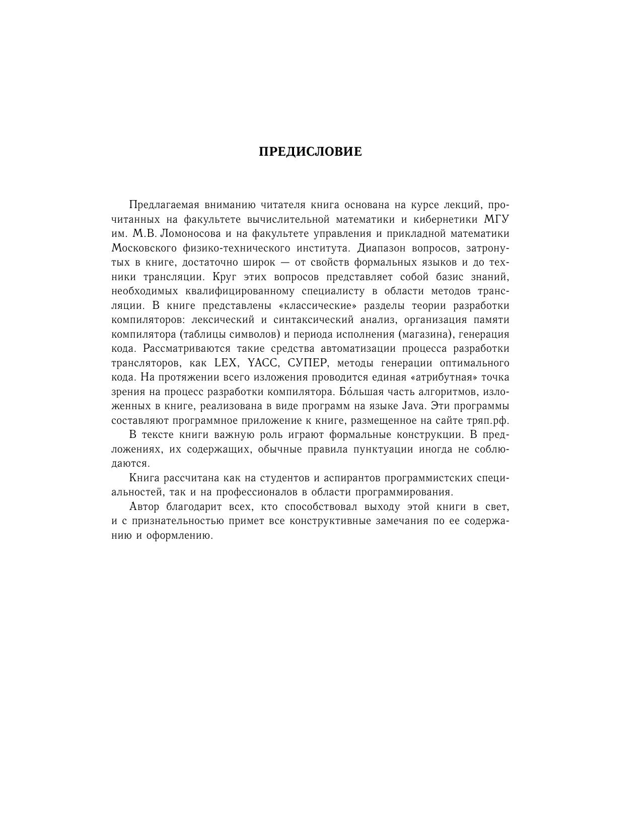 На основе лекций, прочитанных в МГУ и МФТИ, излагаются основные разделы теории языков, автоматов и разработки компиляторов. Рассматриваются такие средства автоматизации процесса разработки трансляторов, как LEX, YACC, СУПЕР, методы генерации оптимального кода. Для студентов, аспирантов программистских специальностей и профессионалов — программистов и разработчиков компиляторов.