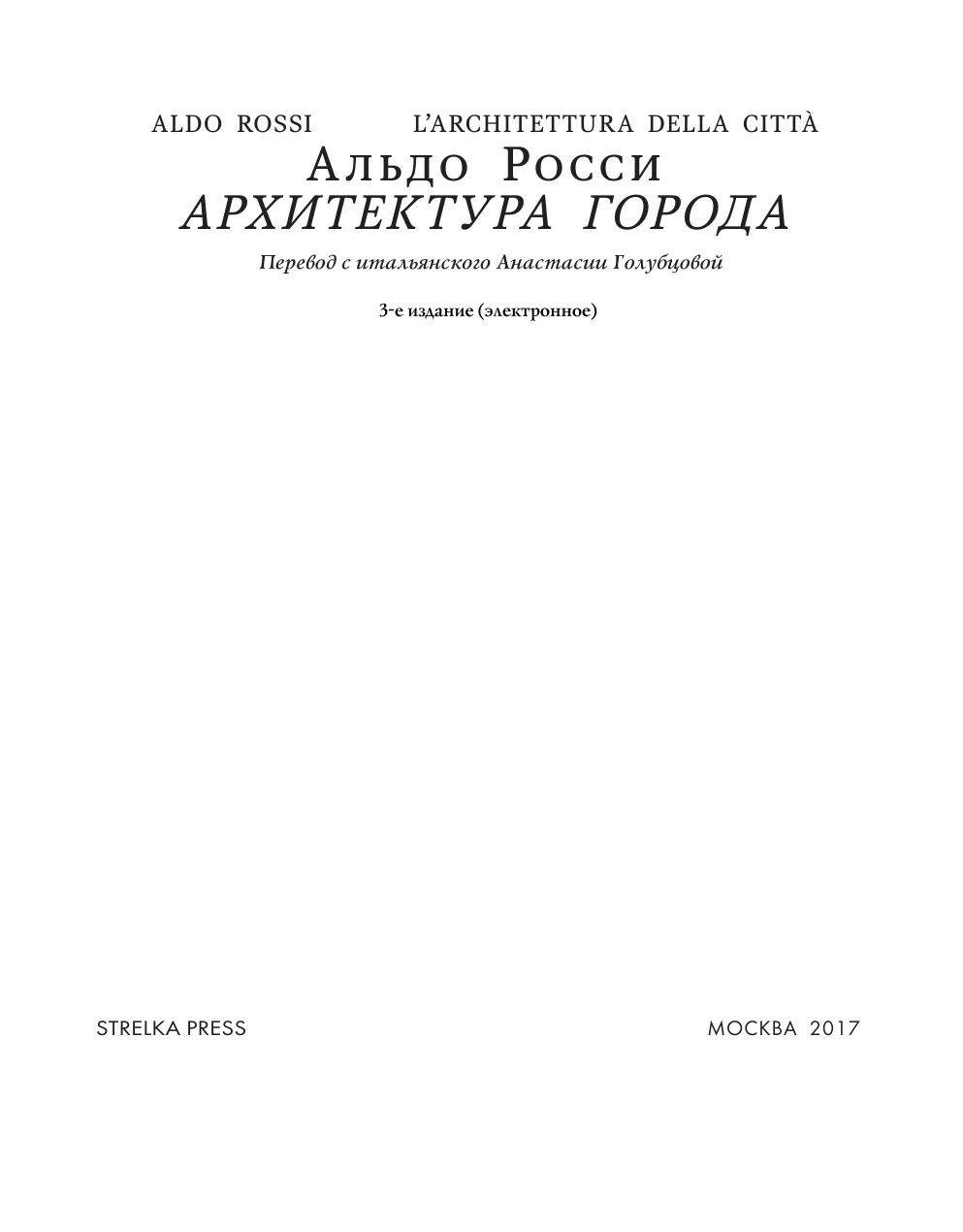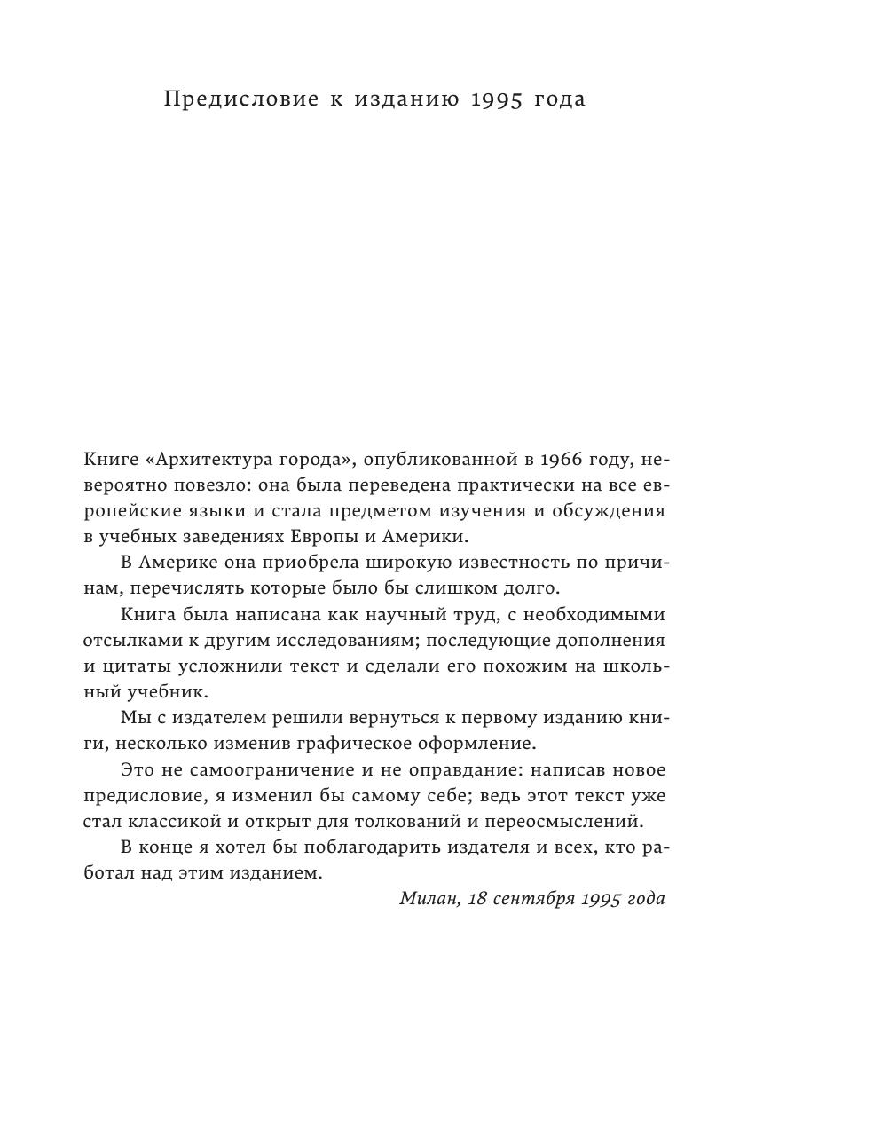 Написанная в 1966 году, на пике торжества модернистской культуры, «Архитектура города» итальянского архитектора Альдо России стала едва ли не самым радикальным ответом на архитектурный утопизм первой половины ХХ века. Росси отказался от создания нового, «лучшего» города и попытался вернуть интерес архитекторов и проектировщиков к городу историческому: существующую городскую архитектуру он описывал как сложный, насыщенный смыслами и эмоциями феномен, открытый новым зданиям, но принимающий их по своим собственным законам.