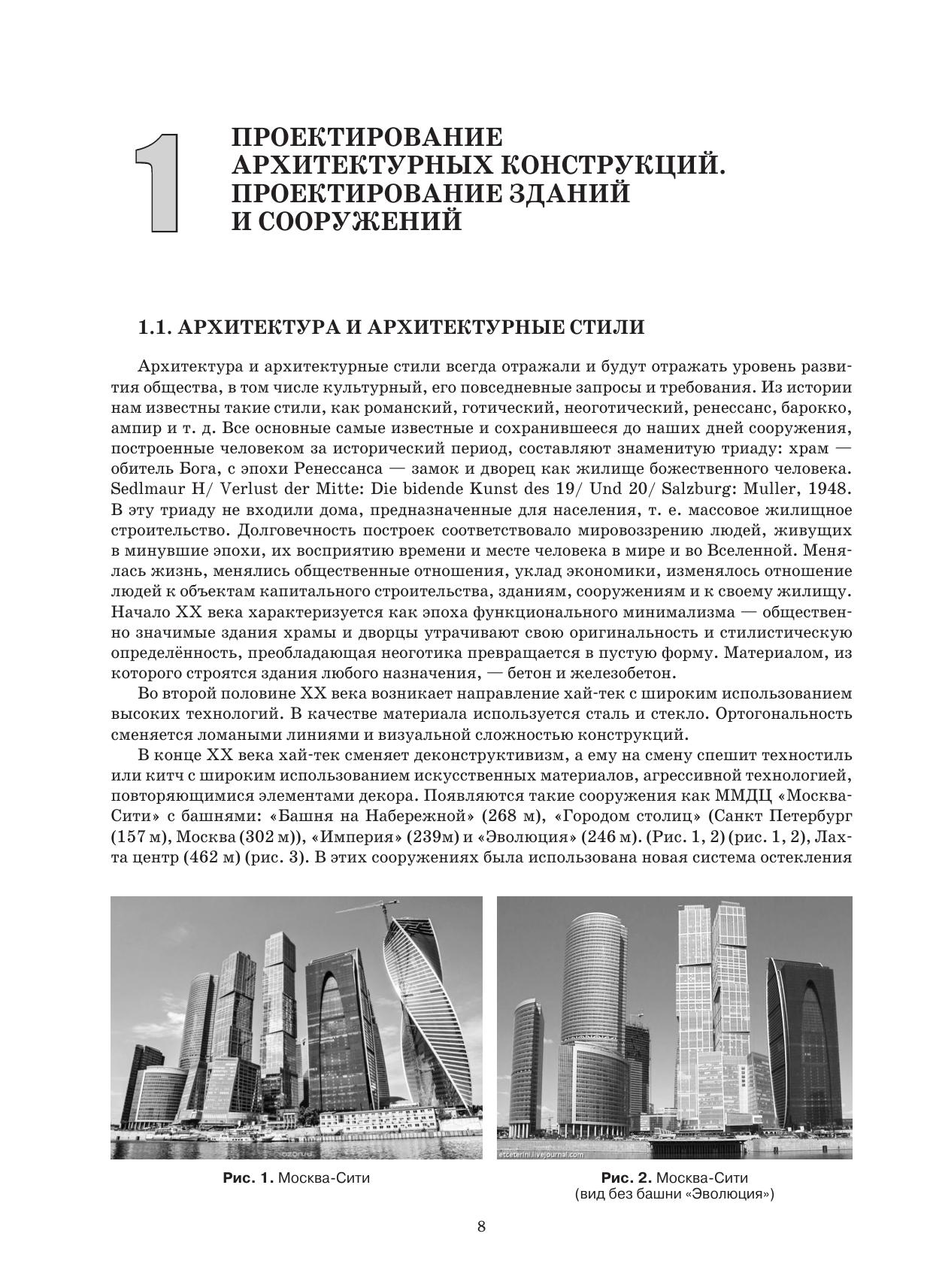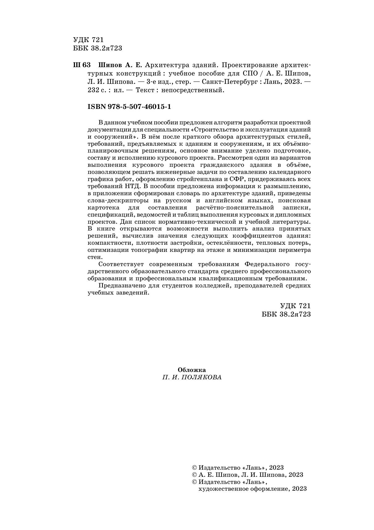 В данном учебном пособии предложен алгоритм разработки проектной документации для специальности «Строительство и эксплуатация зданий и сооружений». В нём после краткого обзора архитектурных стилей, требований, предъявляемых к зданиям и сооружениям, и их объёмно-планировочным решениям, основное внимание уделено подготовке, составу и исполнению курсового проекта. Рассмотрен один из вариантов выполнения курсового проекта гражданского здания в объёме, позволяющем решать инженерные задачи по составлению календарного графика работ, оформлению стройгенплана и СФР, придерживаясь всех требований НТД. В пособии предложена информация к размышлению, в приложении сформирован словарь по архитектуре зданий, приведены слова – дескрипторы на русском и английском языках, поисковая картотека для составления расчётно-пояснительной записки, спецификаций, ведомостей и таблиц выполнения курсовых и дипломных проектов. Дан список нормативно-технической и учебной литературы. В книге открываются возможности выполнить анализ принятых решений, вычислив значения следующих коэффициентов здания: компактности, плотности застройки, остеклённости, тепловых потерь, оптимизации топографии квартир на этаже и минимизации периметра стен. Соответствует современным требованиям Федерального государственного образовательного стандарта среднего профессионального образования и профессиональным квалификационным требованиям. Предназначено для студентов колледжей, преподавателей средних учебных заведений.
