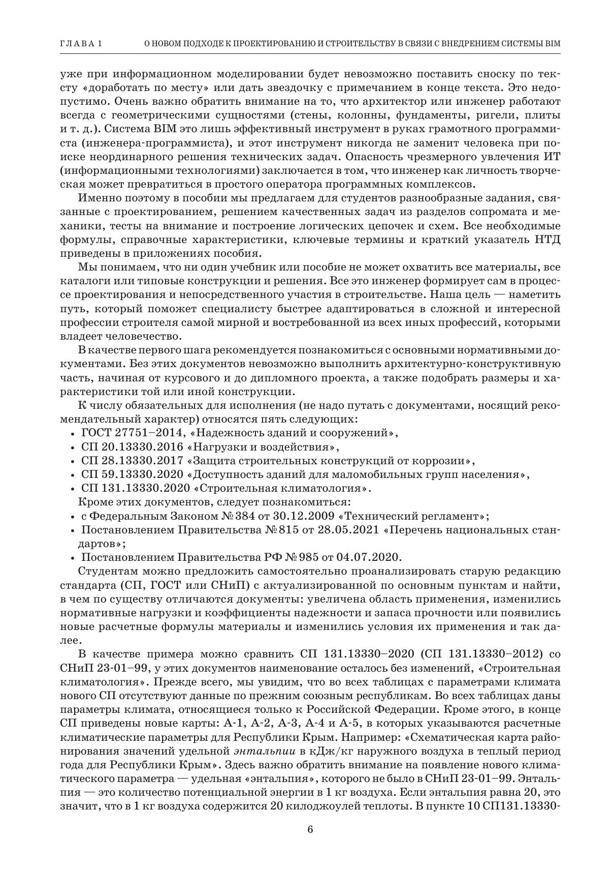 Данная книга является дополнением к учебным пособиям тех же авторов, которые выпущены издательством Лань: «Архитектура зданий. Проектирование архитектурных конструкций», «Архитектура зданий в примерах, задачах, тестах», «Архитектура зданий. Основы проектирования производственных конструкций». Пособие знакомит с основами проектирования и строительства, адаптирует учебный и методический материал к новым методам, сокращённо именуемых BIM (Building Information Modelling). Данная система опирается на строгое соблюдение всех требований и правил расчёта и проектирования конструкций, гарантирующих прочность, надёжность и долговечность сооружений. Нарушение требований этих принципов и правил приводит к авариям. Примеры приведены в тексте. Студентам в пособии предлагаются: методика расчёта жилого здания, возможные компоновки квартир, выбор ограждающих конструкций и фундаментов, качественные задачи и тесты, связанные с проектированием и решение которых опирается на фундаментальные знания естественно-научных дисциплин. В приложении имеется справочно-библиографический материал. Для расширения творческого кругозора даются исторические сведения о выдающихся Российских и зарубежных учёных, строителях и архитекторах. Учебное пособие соответствует современным требованиям Федерального государственного образовательного стандарта среднего профессионального образования и профессиональным квалификационным требованиям. Предназначено для преподавателей и студентов колледжей, обучающихся по архитектурно-строительным специальностям, а также для всех тех, кто стремится расширить свой кругозор.