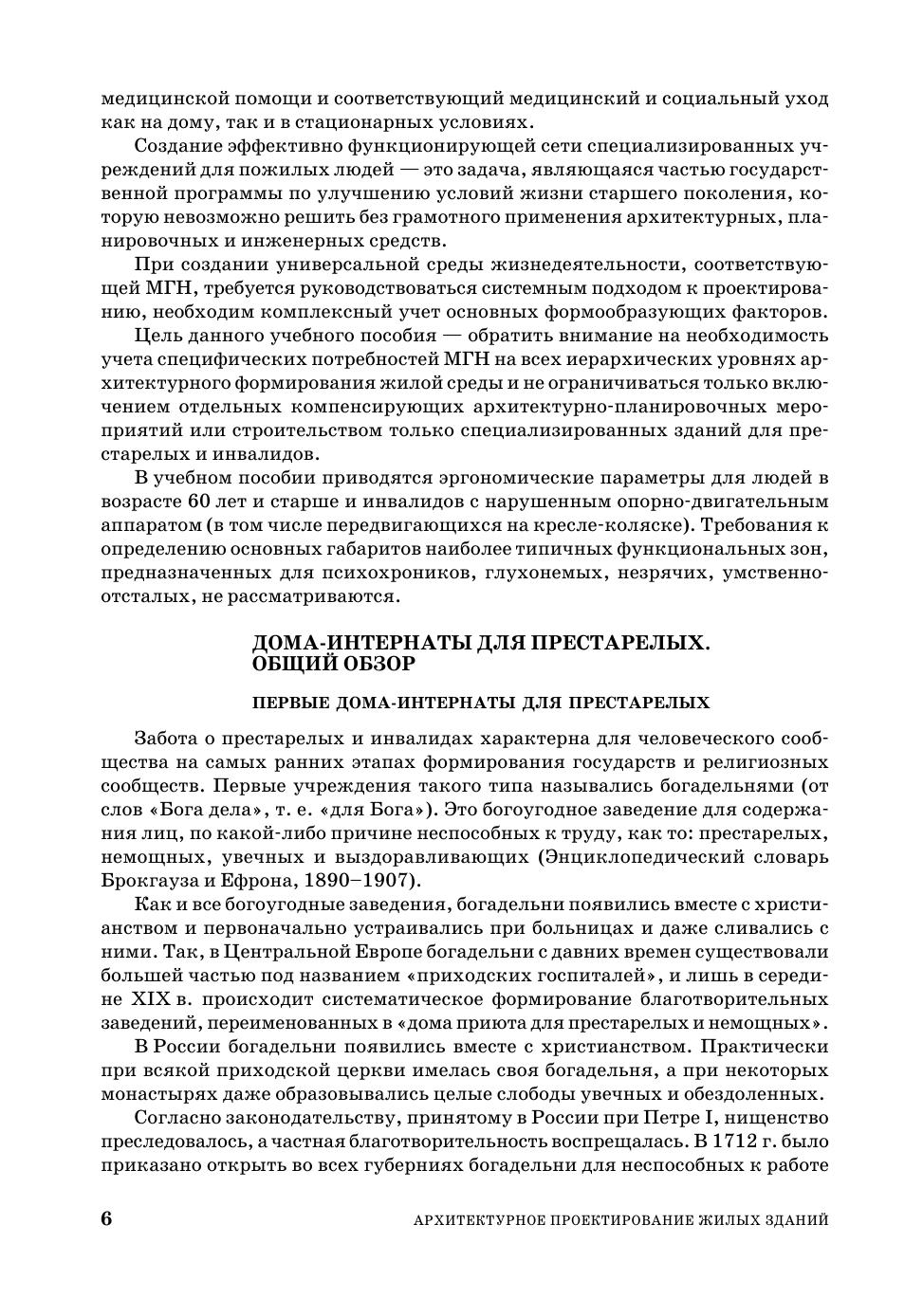 Рассматриваются принципы формирования жилой среды, учитывающей специфические особенности людей, относящихся к маломобильной группе населения. Даны основные рекомендации для разработки оптимальных планировочных решений — функциональных зон, эргономических схем, номенклатуры массовых и специализированных типов жилища. Приведены основные характеристики и примеры планировочных решений специализированных типов жилища. Материал рассчитан на студентов архитектурных факультетов высших учебных заведений, обучающихся по направлению подготовки «Архитектура», также может быть полезен для специалистов, работающих в области проектирования, строительства и эксплуатации рассматриваемых типов зданий.