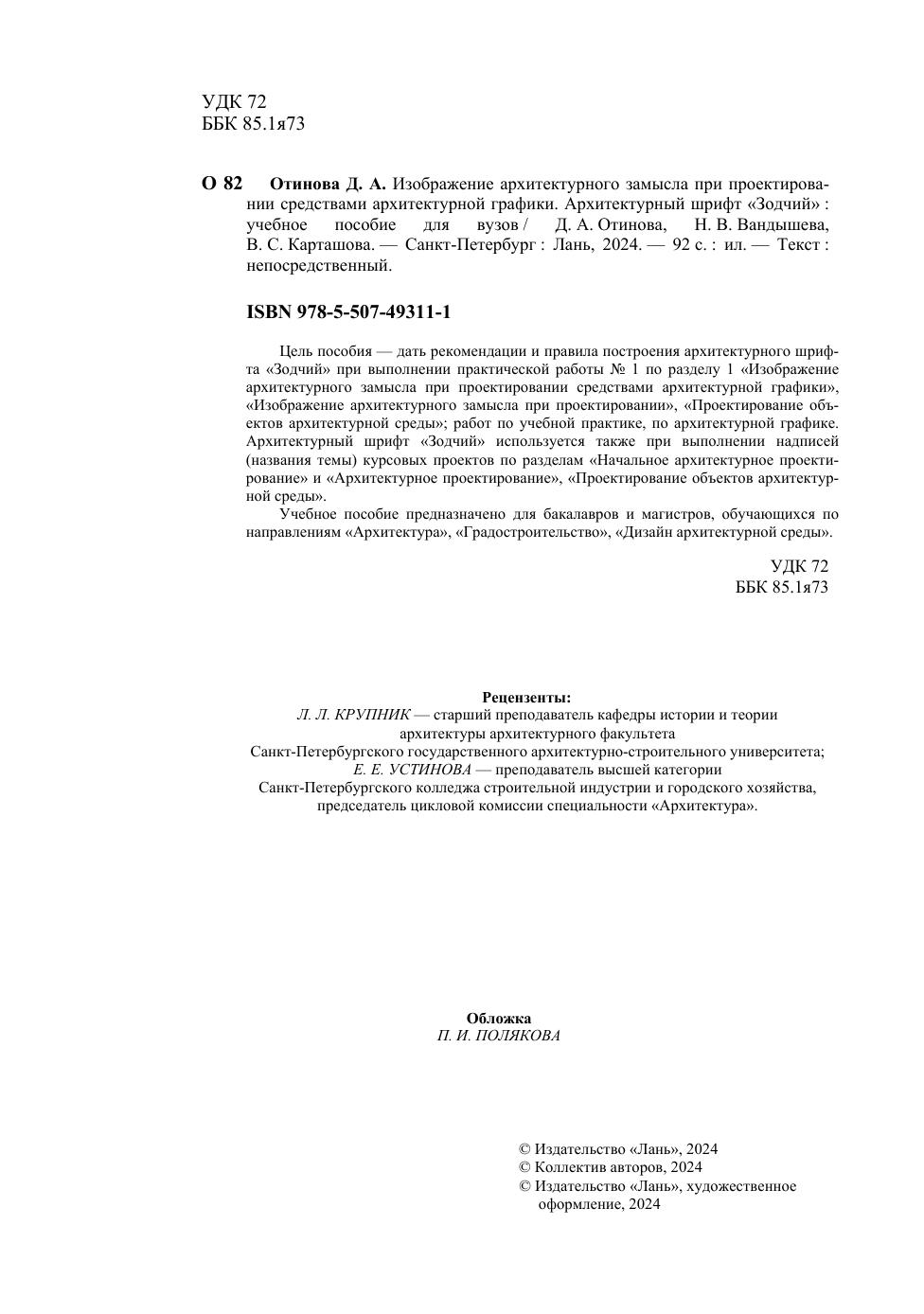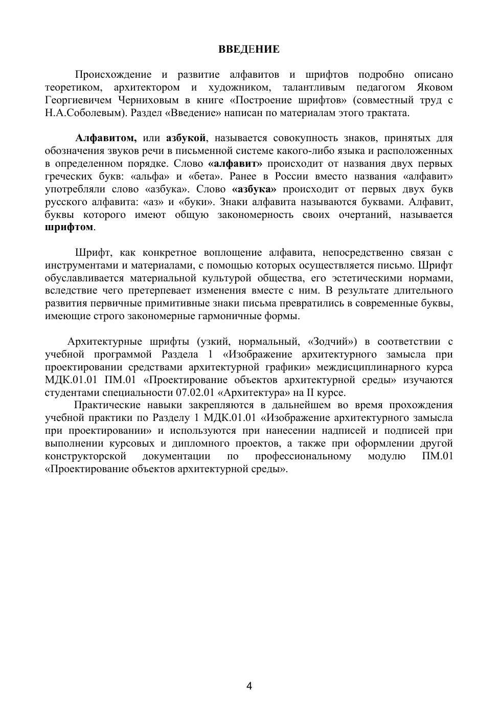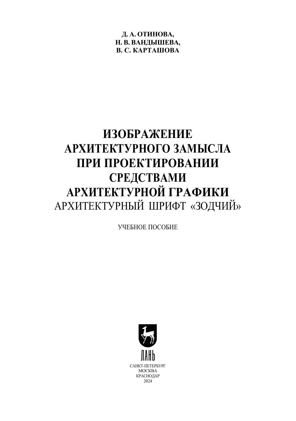 Цель пособия — дать рекомендации и правила построения архитектурного шрифта «Зодчий» при выполнении практической работы № 1 по разделу 1 «Изображение архитектурного замысла при проектировании средствами архитектурной графики», «Изображение архитектурного замысла при проектировании», «Проектирование объектов архитектурной среды», работ по учебной практике, по архитектурной графике. Архитектурный шрифт «Зодчий» используется также при выполнении надписей (названия темы) курсовых проектов по разделам «Начальное архитектурное проектирование» и «Архитектурное проектирование», «Проектирование объектов архитектурной среды». Учебное пособие предназначено для бакалавров и магистров, обучающихся по направлениям «Архитектура», «Градостроительство», «Дизайн архитектурной среды».