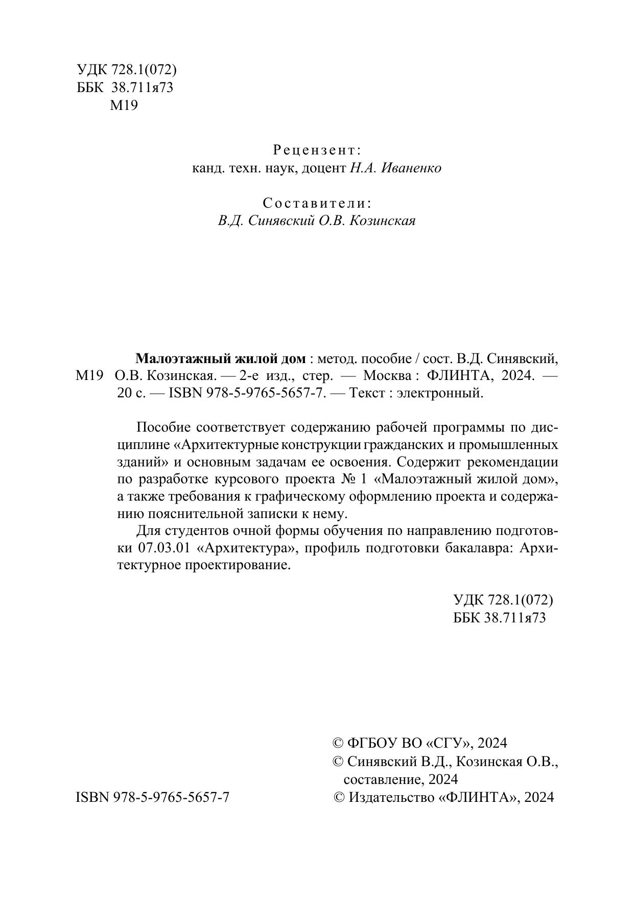 Пособие соответствует содержанию рабочей программы по дис-циплине «Архитектурные конструкции гражданских и промышленных зданий» и основным задачам ее освоения. Содержит рекомендации по разработке курсового проекта № 1 «Малоэтажный жилой дом», а также требования к графическому оформлению проекта и содержа-нию пояснительной записки к нему.