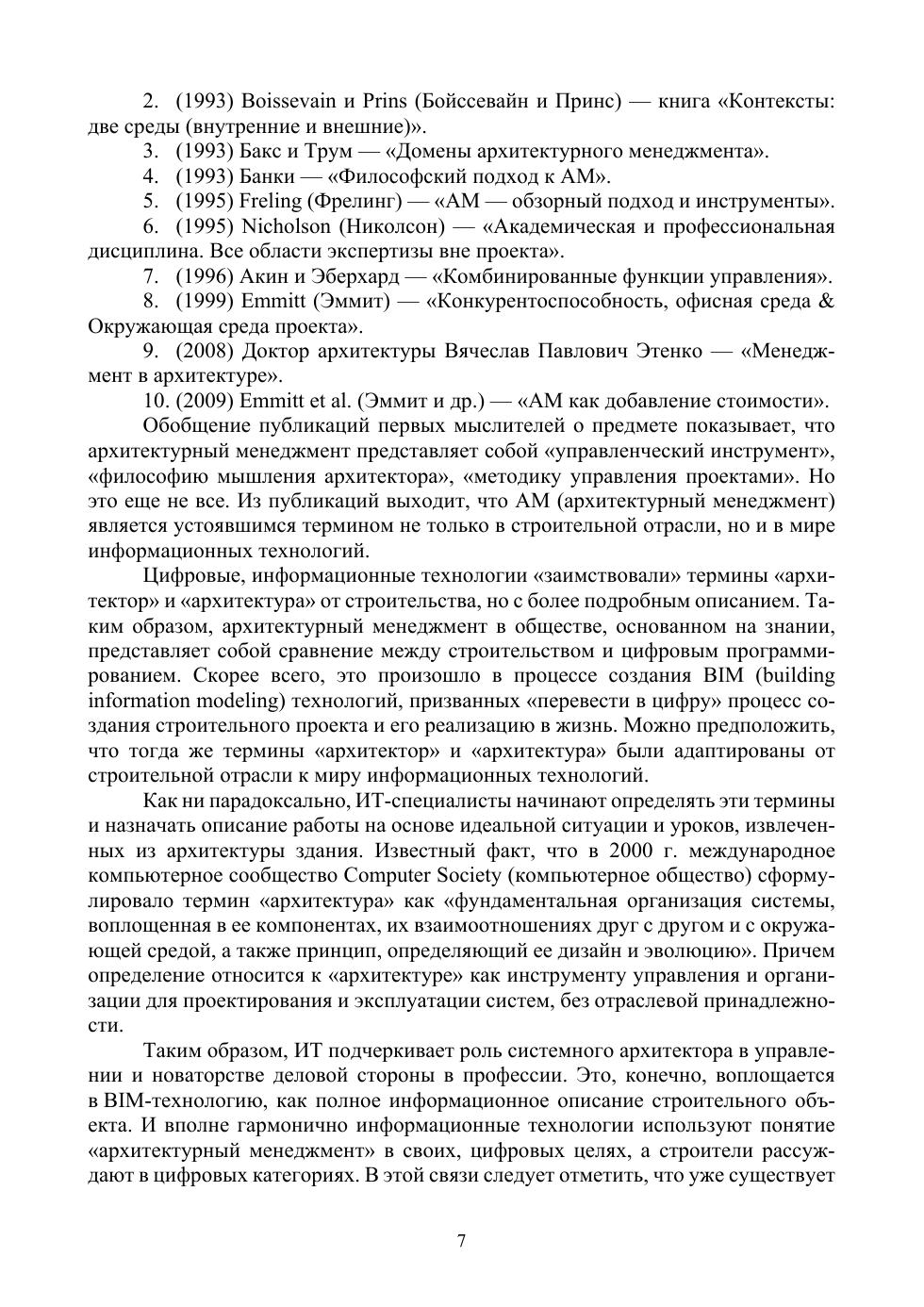 В монографии излагаются рассуждения об ассоциативной психомоторике архитектурных идей, основанных на культурно-историческом базисе российской архитектуры, через призму субъектнообъектных отношений. Представлены сведения о методах и средствах управления архитектурно-строительным проектированием. Подробно рассмотрен процесс от возникновения идеи об инвестициях в строительство до реально построенных объектов капитального строительства с учетом сохранения архитектурного наследия.