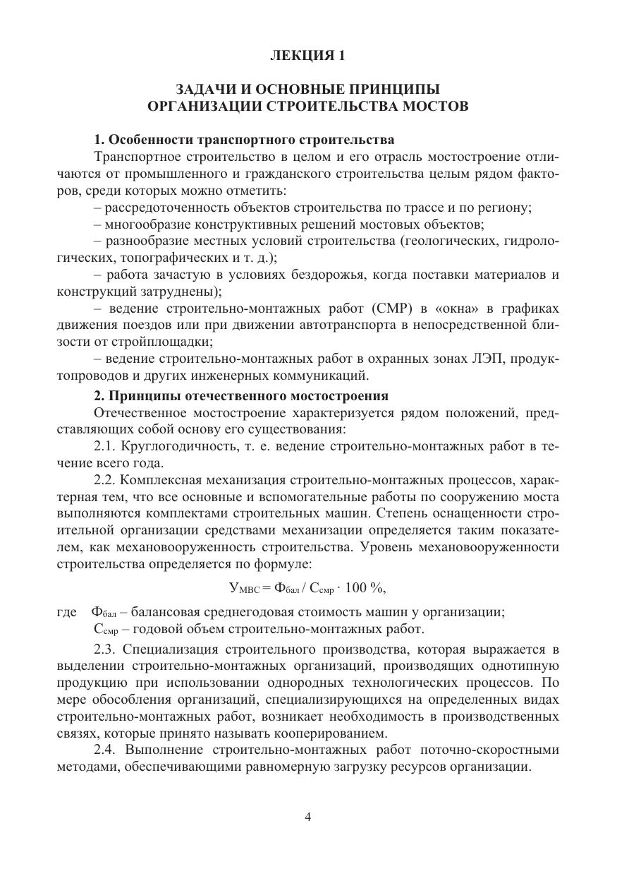 Лекции по организации, планированию и управлению строительством мостов