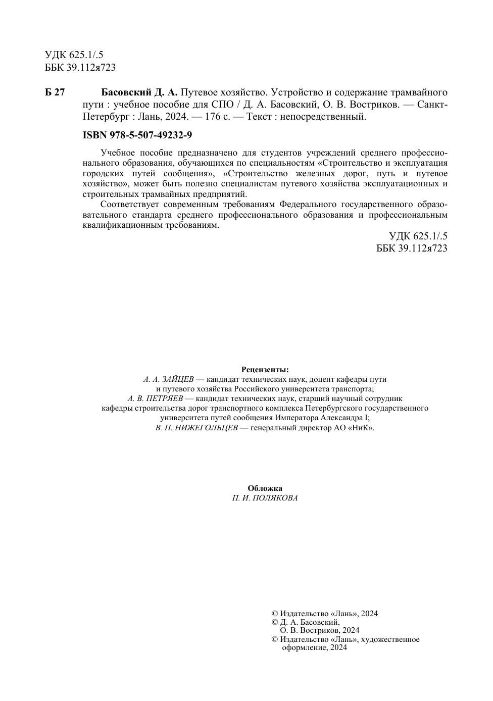 Учебное пособие предназначено для студентов учреждений среднего профессионального образования, обучающихся по специальностям «Строительство и эксплуатация городских путей сообщения», «Строительство железных дорог, путь и путевое хозяйство», может быть полезно специалистам путевого хозяйства эксплуатационных и строительных трамвайных предприятий. Соответствует современным требованиям Федерального государственного образовательного стандарта среднего профессионального образования и профессиональным квалификационным требованиям.