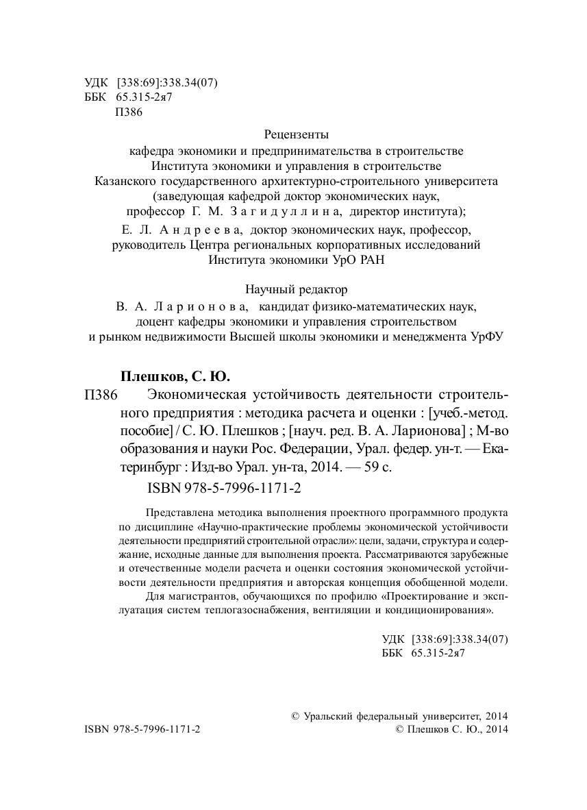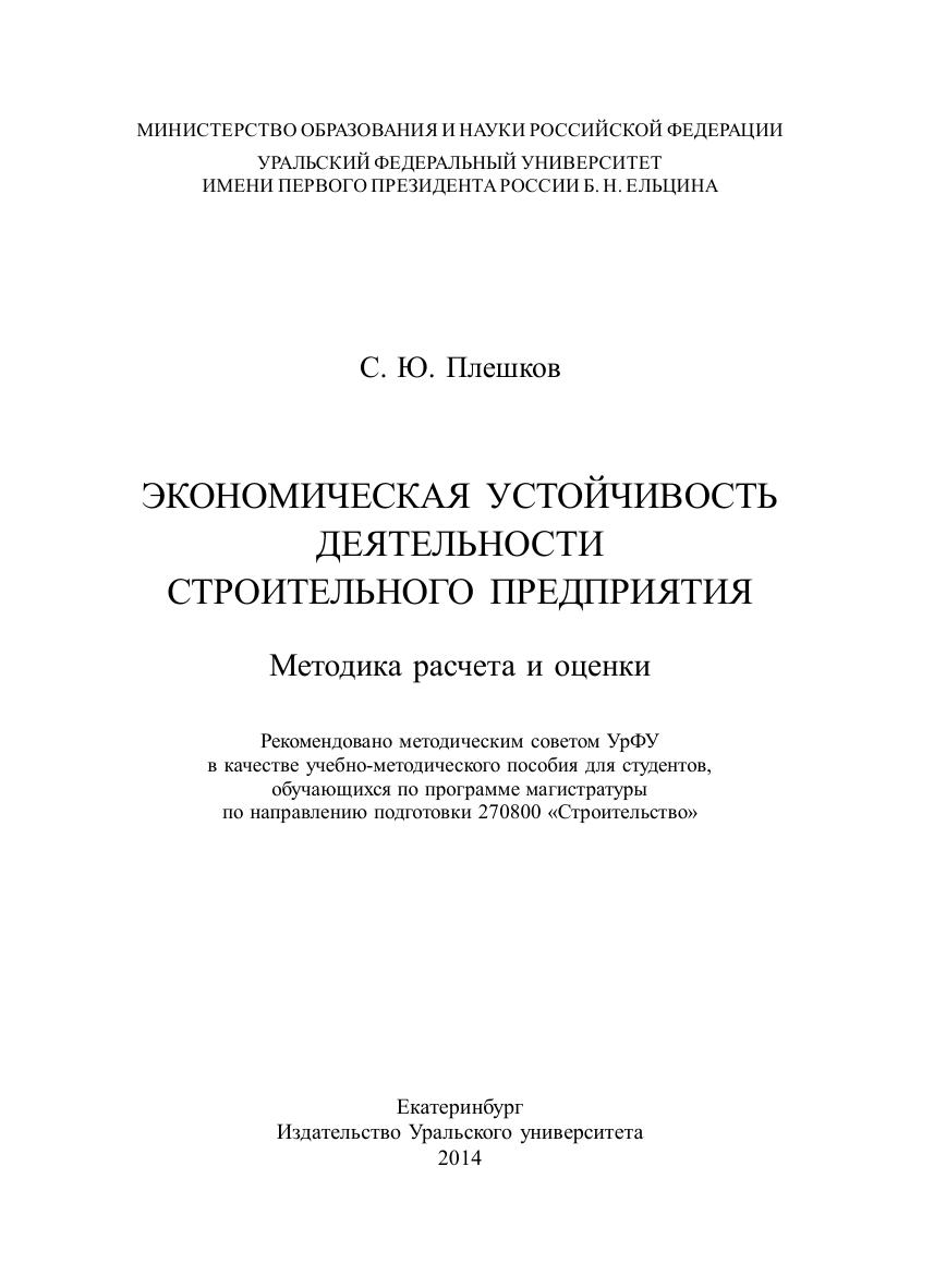 Экономическая устойчивость деятельности строительного предприятия : методика расчета и оценки : учеб.-метод.пособие