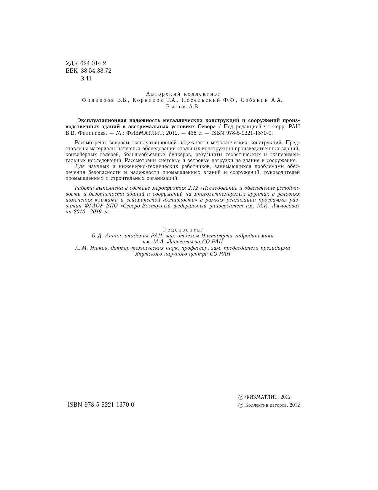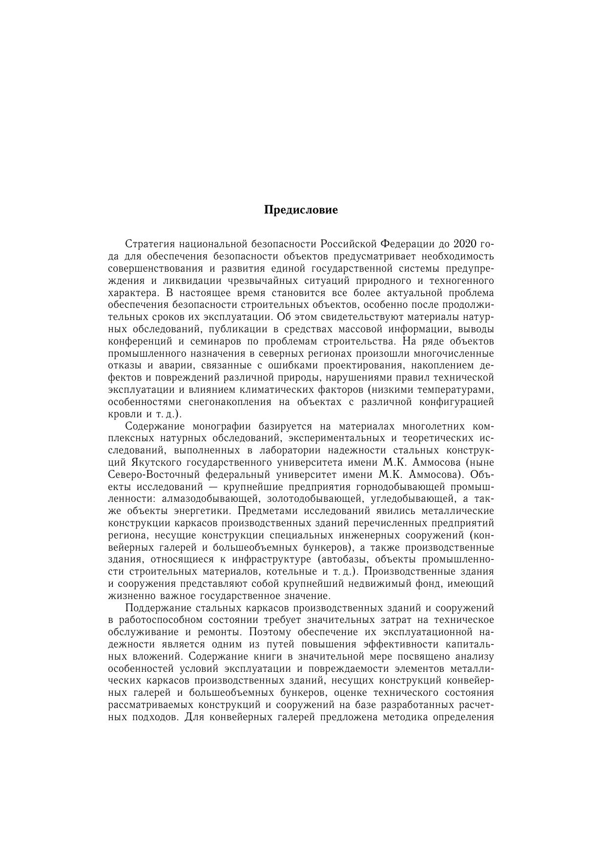Рассмотрены вопросы эксплуатационной надежности металлических конструкций. Представлены материалы натурных обследований стальных конструкций производственных зданий, конвейерных галерей, большеобъемных бункеров, результаты теоретических и экспериментальных исследований. Рассмотрены снеговые и ветровые нагрузки на здания и сооружения. Для научных и инженерно-технических работников, занимающихся проблемами обеспечения безопасности и надежности промышленных зданий и сооружений, руководителей промышленных и строительных организаций.
