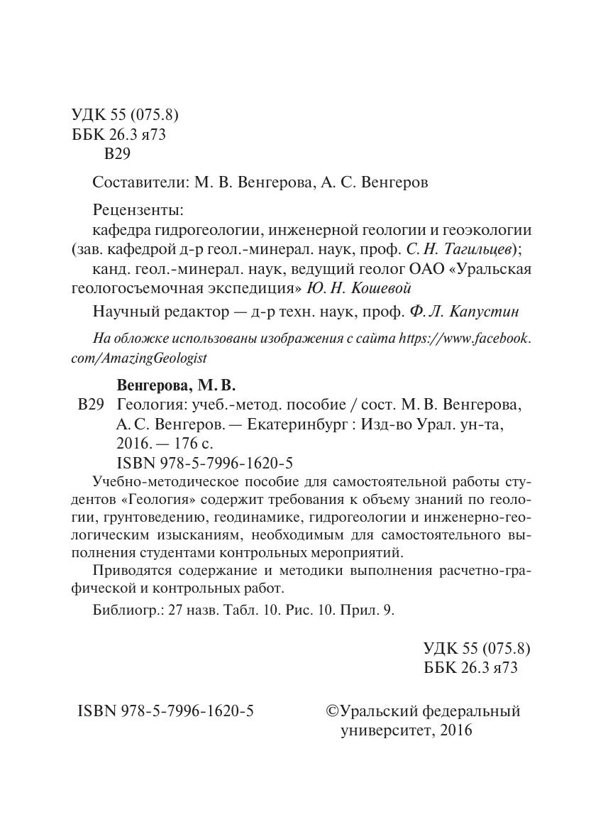 Учебно-методическое пособие для самостоятельной работы студентов «Геология» содержит требования к объему знаний по геологии, грунтоведению, геодинамике, гидрогеологии и инженерно-геологическим изысканиям, необходимым для самостоятельного выполнения студентами контрольных мероприятий. Приводятся содержание и методики выполнения расчетно-графической и контрольных работ.