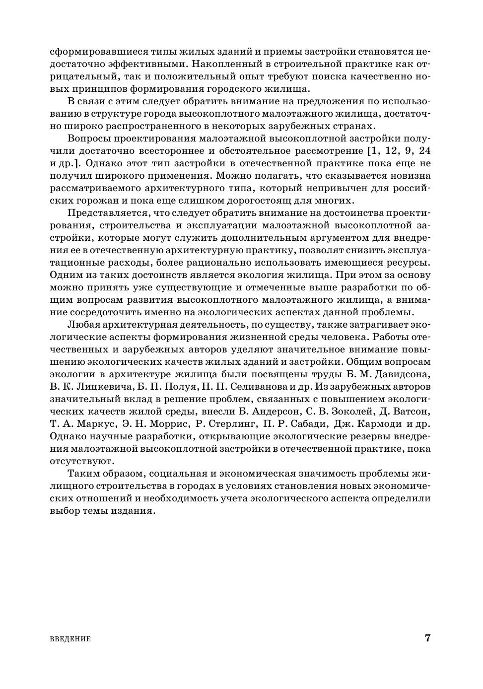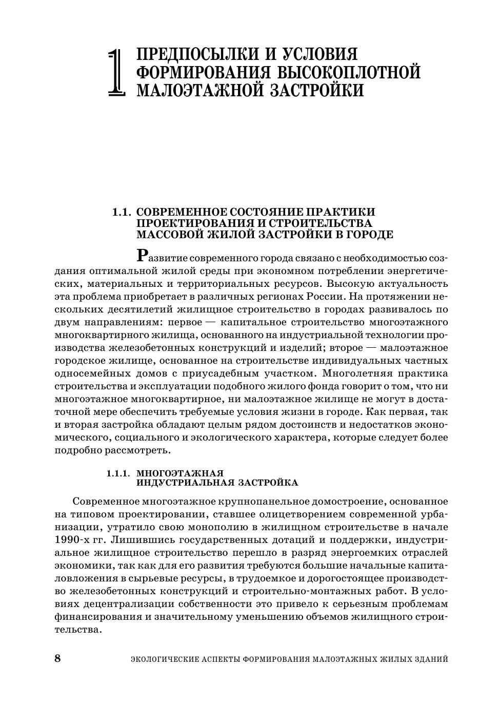 В учебном пособии изложены теоретические и практические основы формирования экологической архитектуры малоэтажного городского жилища повышенной плотности. Приведена классификация жилых комплексов и типология высокоплотной малоэтажной жилой застройки. Использован отечественный и зарубежный опыт проектирования и строительства энергоэкономичных и энергоактивных жилых зданий. Предназначено для студентов, аспирантов и преподавателей архитектурно-строительных направлений вузов. Издание может быть полезным широкому кругу специалистов-архитекторов, строителей и инвесторов, которых интересуют пути решения проблем, связанных с формированием доступного и экономичного жилища.
