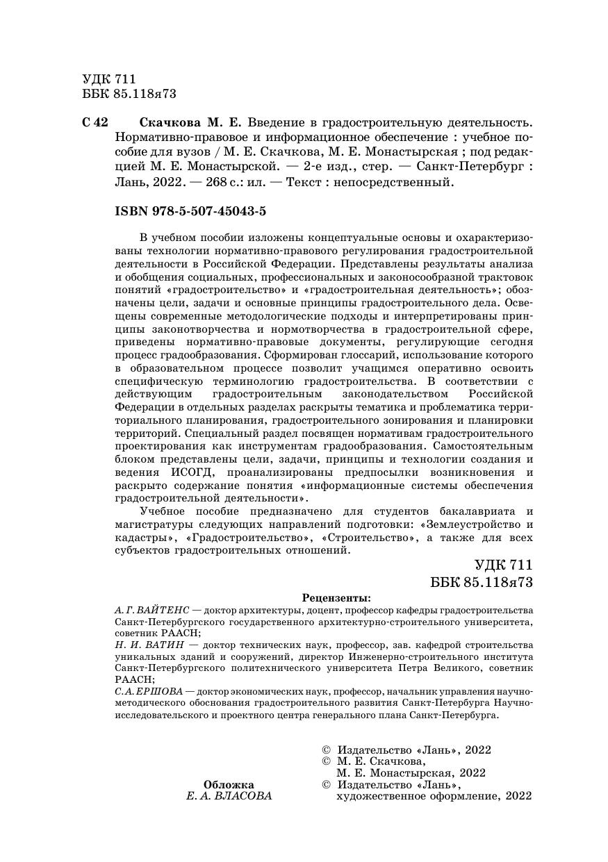 Введение в градостроительную деятельность. Нормативно-правовое и информационное обеспечение