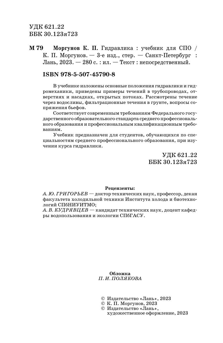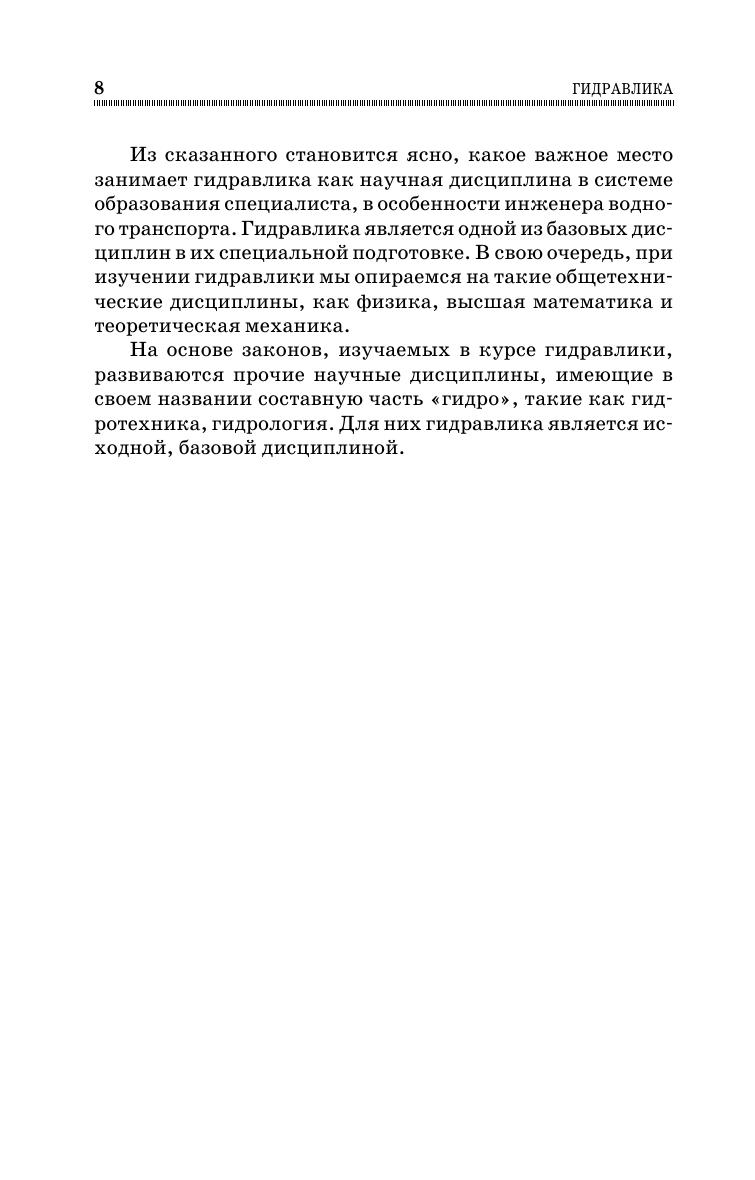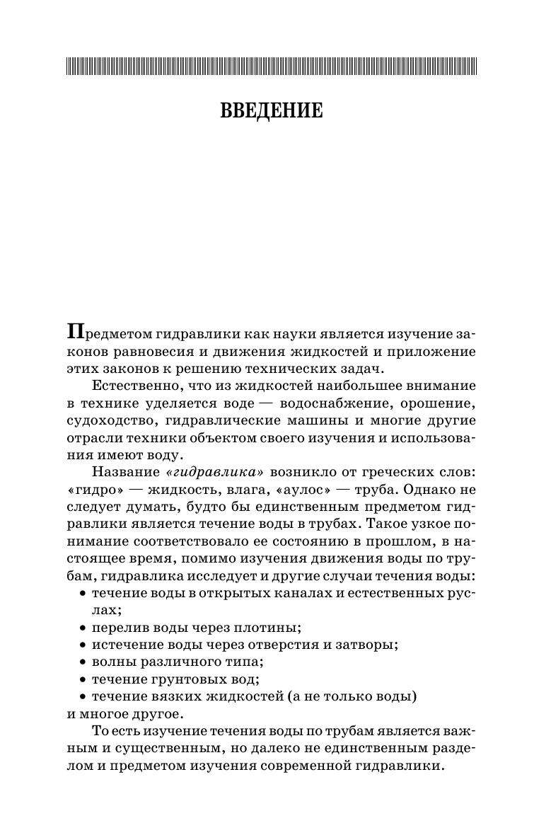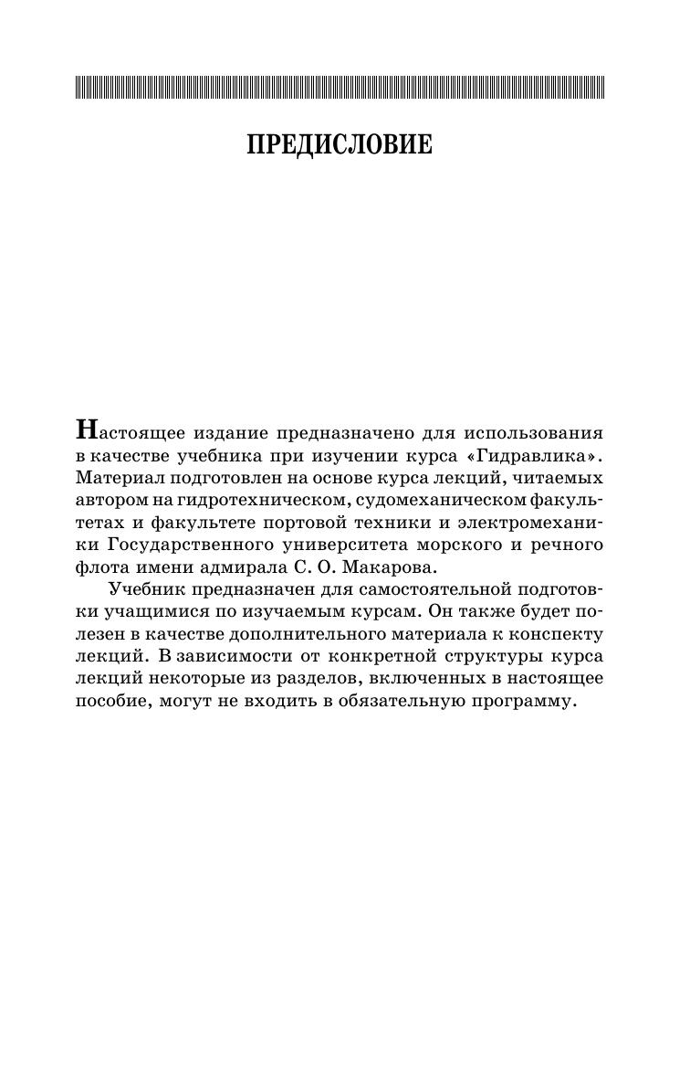 В учебнике изложены основные положения гидравлики и гидромеханики, приведены примеры течений в трубопроводах, отверстиях и насадках, открытых потоках. Рассмотрены течение через водосливы, фильтрационные течения в грунте, вопросы сопряжения бьефов. Соответствует современным требованиям Федерального государственного образовательного стандарта среднего профессионального образования и профессиональным квалификационным требованиям. Учебник предназначен для студентов, обучающихся по специальностям среднего профессионального образования, при изучении курса гидравлики.