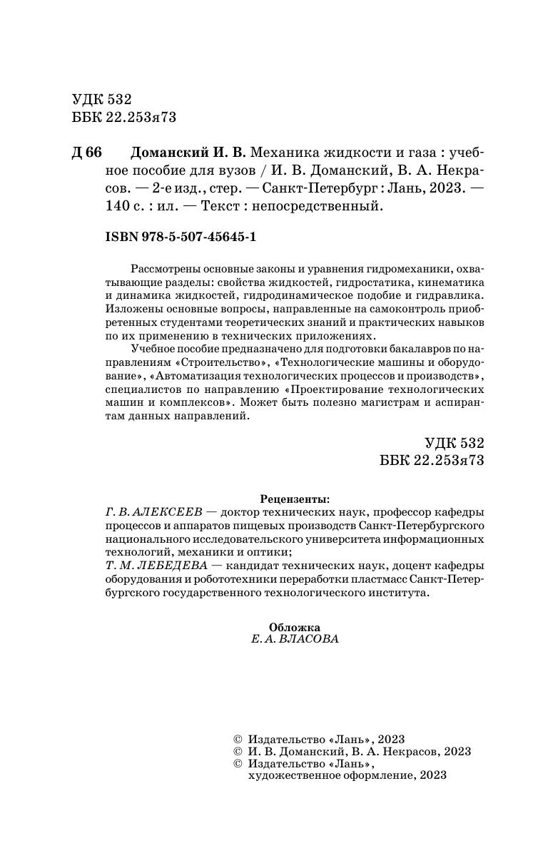 Рассмотрены основные законы и уравнения гидромеханики, охватывающие разделы: свойства жидкостей, гидростатика, кинематика и динамика жидкостей, гидродинамическое подобие и гидравлика. Изложены основные вопросы, направленные на самоконтроль приобретенных студентами теоретических знаний и практических навыков по их применению в технических приложениях. Учебное пособие предназначено для подготовки бакалавров по направлениям «Строительство», «Технологические машины и оборудование», «Автоматизация технологических процессов и производств», специалистов по направлению «Проектирование технологических машин и комплексов». Может быть полезно магистрам и аспирантам данных направлений.