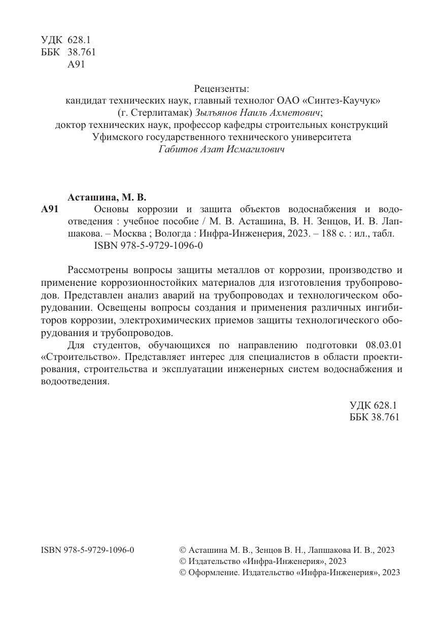 Основы коррозии и защита объектов водоснабжения и водоотведения