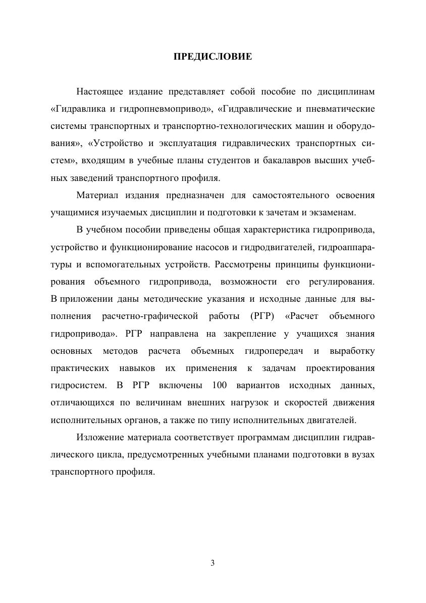 В учебном пособии приведены общая характеристика гидропривода, устройство и функционирование насосов и гидродвигателей, гидроаппаратуры и вспомогательных устройств. Рассмотрены принципы функционирования объемного гидропривода, возможности его регулирования. В приложении дана расчетно-графическая работа «Расчет объемного гидропривода».