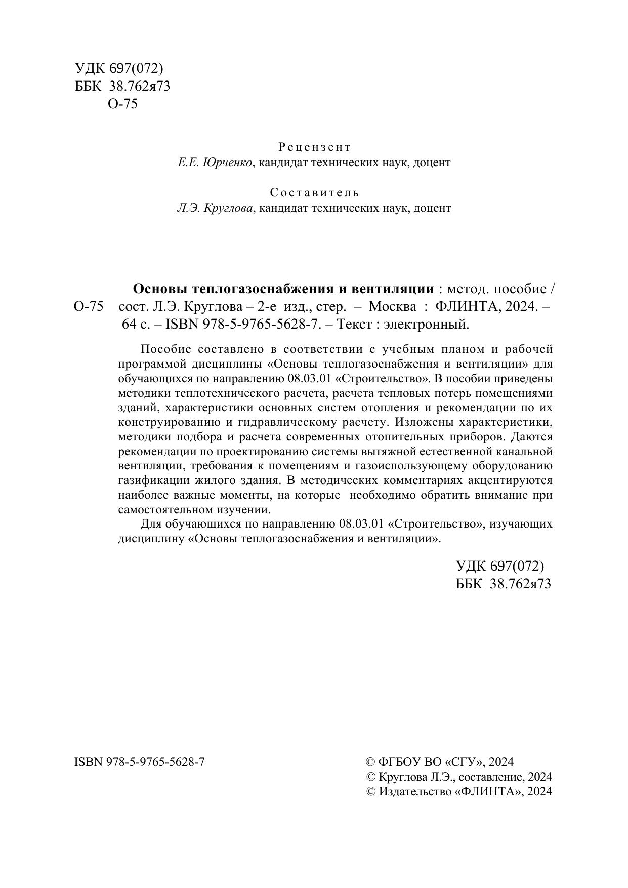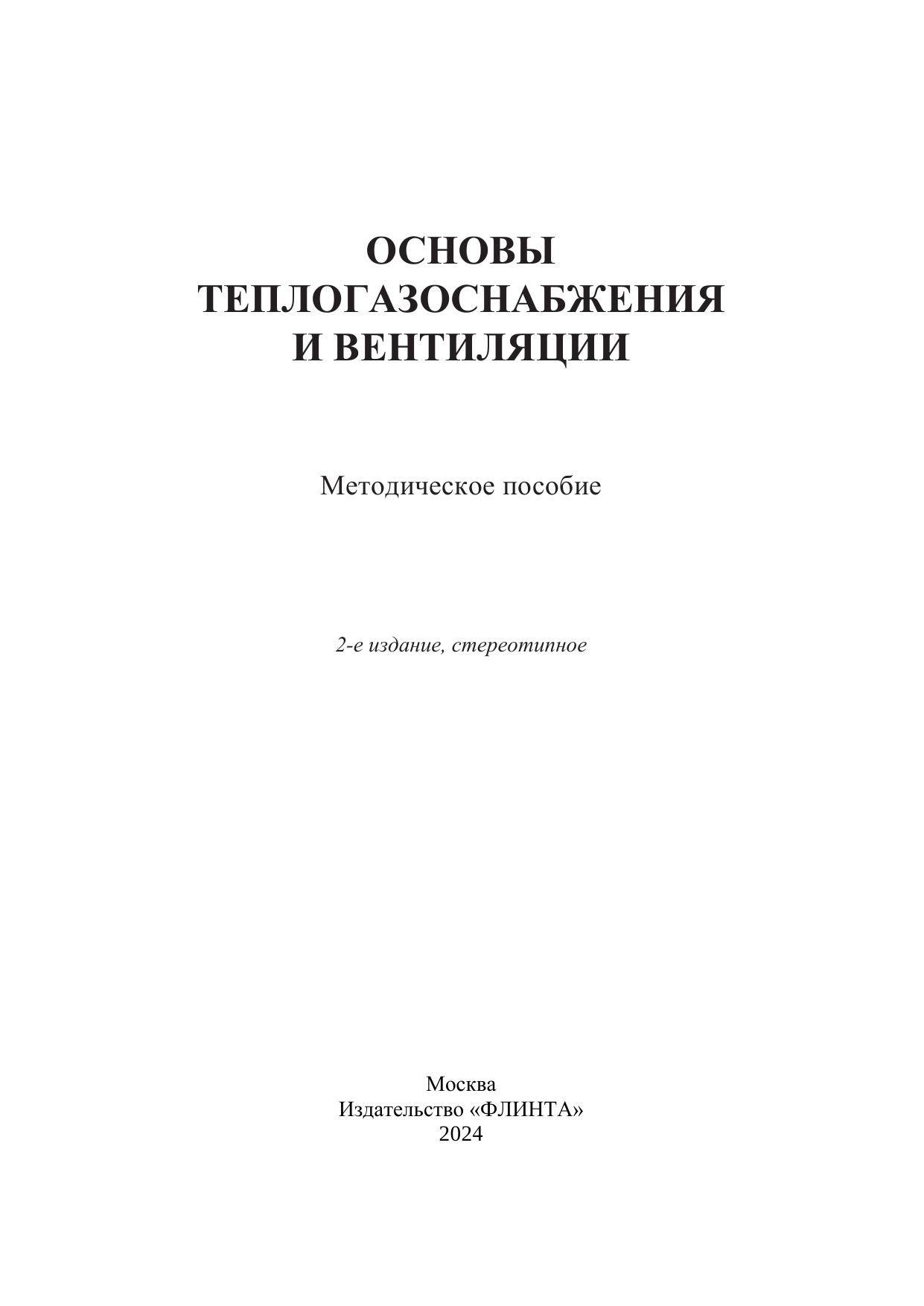 Пособие составлено в соответствии с учебным планом и рабочей программой дисциплины «Основы теплогазоснабжения и вентиляции» для обучающихся по направлению 08.03.01 «Строительство».