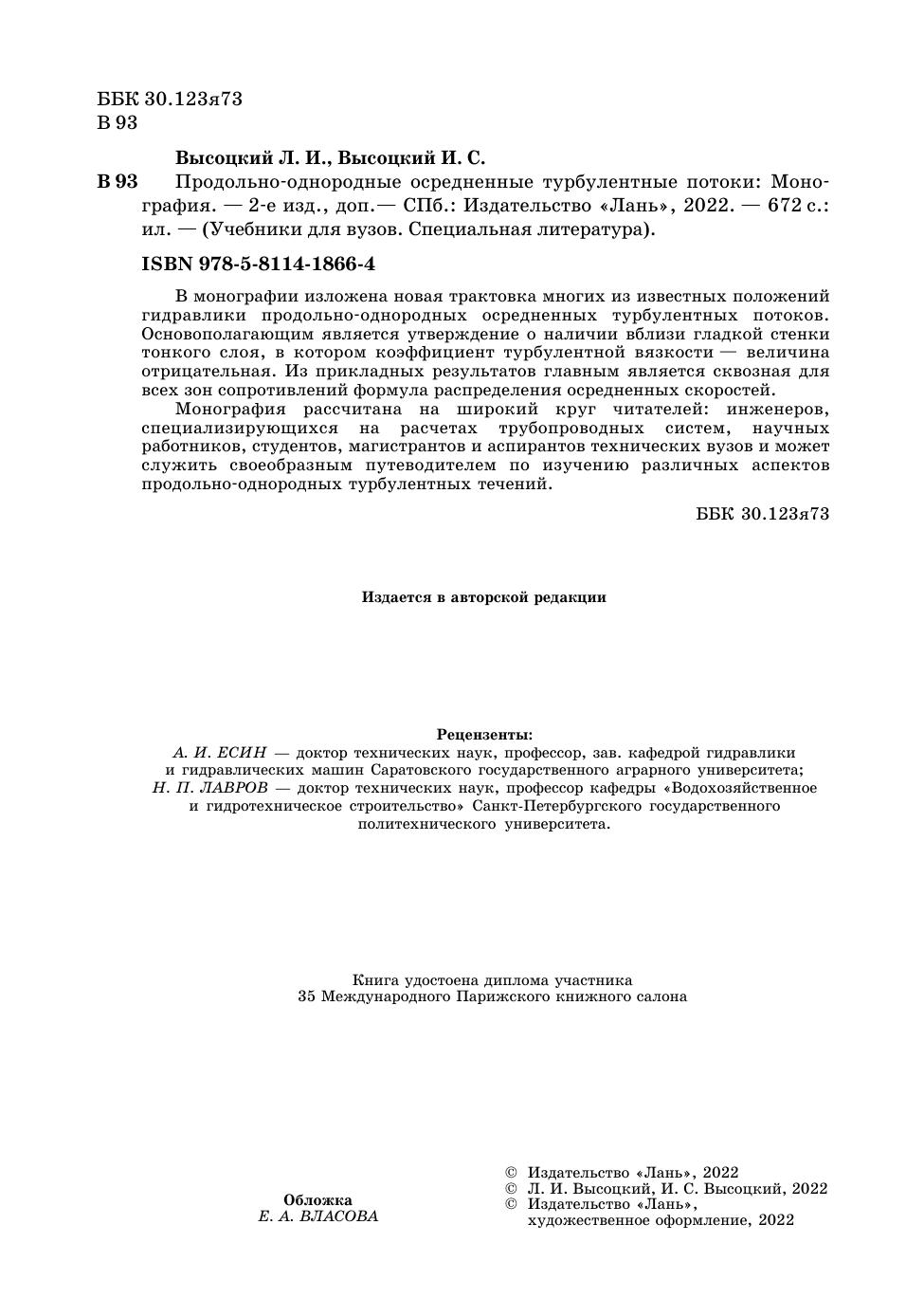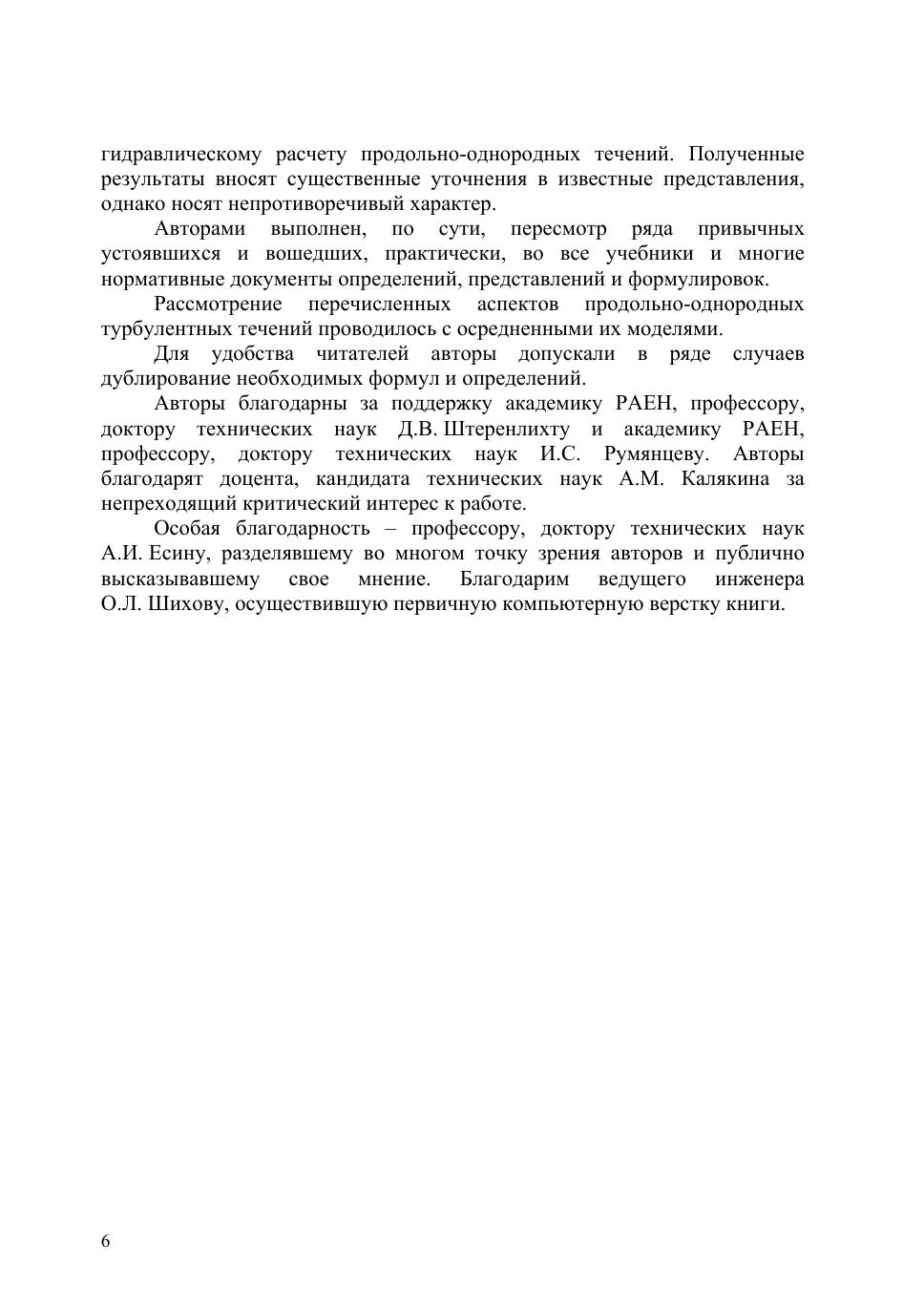 В монографии изложена новая трактовка многих из известных положений гидравлики продольно-однородных осредненных турбулентных потоков. Основополагающим является утверждение о наличии вблизи гладкой стенки тонкого слоя, в котором коэффициент турбулентной вязкости – величина отрицательная. Из прикладных результатов главным является сквозная для всех зон сопротивлений формула распределения осредненных скоростей. Монография рассчитана на широкий круг читателей: инженеров, специализирующихся на расчетах трубопроводных систем, научных работников, студентов, магистрантов и аспирантов технических вузов и может служить своеобразным путеводителем по изучению различных аспектов продольно – однородных турбулентных течений.