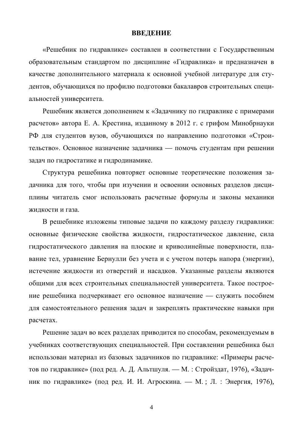 Пособие планируется использовать в качестве дополнительного материала на практических занятиях, при выполнении курсовых, расчетно-графических и контрольных работ, а также для самостоятельных занятий студентов университета. Дисциплина «Гидравлика» изучается на втором курсе в третьем и четвертом семестрах после освоения студентами знаний по физике, математике и теоретической механике.