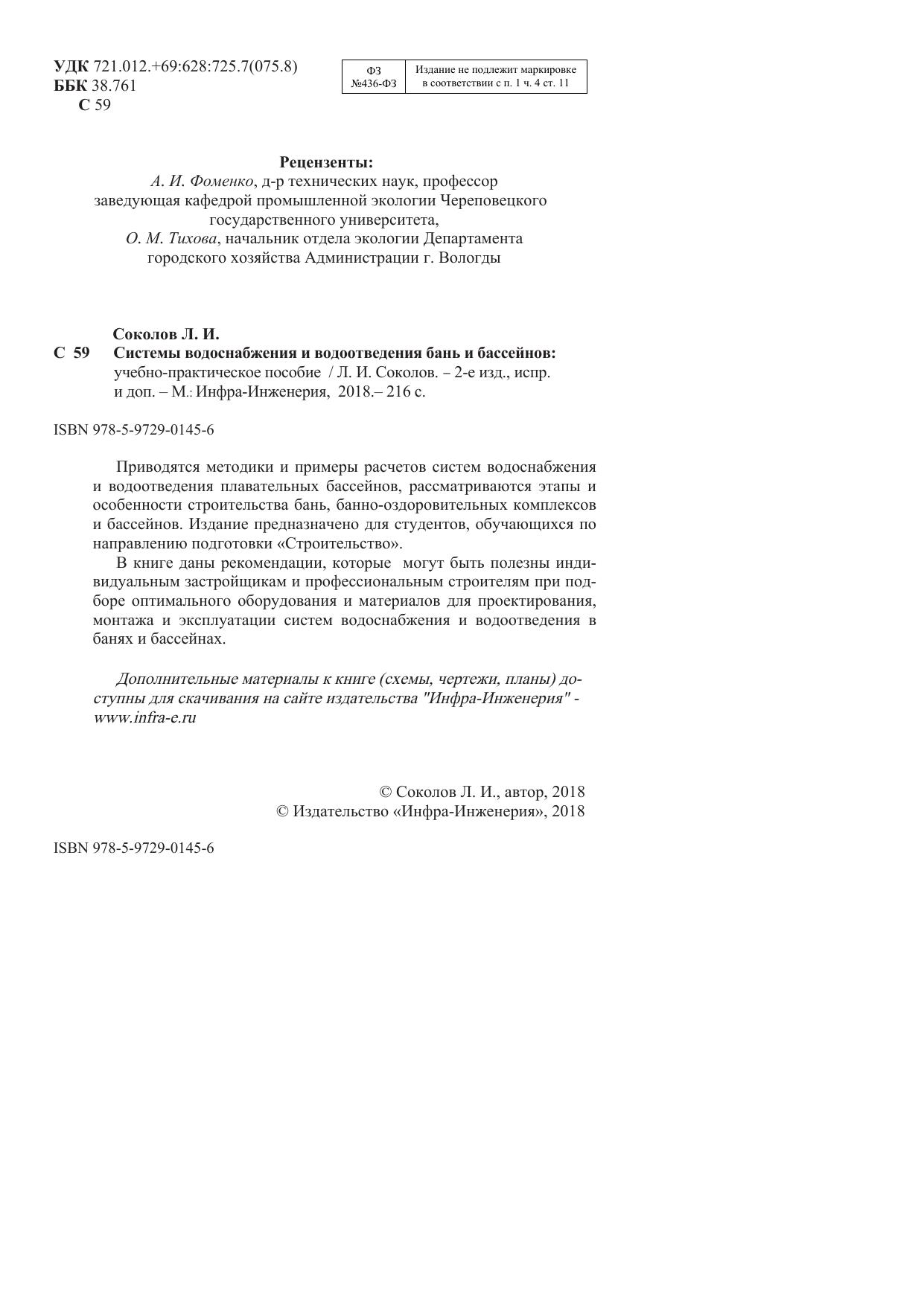 Приводятся методики и примеры расчетов систем водоснабжения и водоотведения плавательных бассейнов, рассматриваются этапы и особенности строительства бань, банно-оздоровительных комплексов и бассейнов. В книге даны рекомендации, которые могут быть полезны индивидуальным застройщикам и профессиональным строителям при подборе оптимального оборудования и материалов для проектирования, монтажа и эксплуатации систем водоснабжения и водоотведения в банях и бассейнах.
