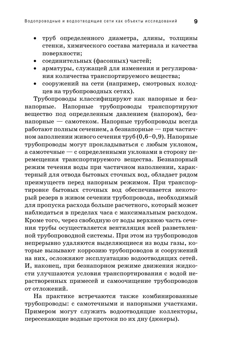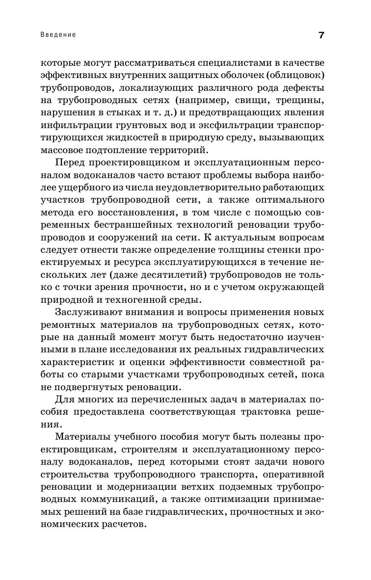 В учебном пособии представлены сведения о трубах, используемых в системах городского водоснабжения и водоотведения, методах гидравлического расчета напорных и безнапорных трубопроводных сетей, а также об автоматизированных программах сопровождения научных исследований и проектных разработок по ряду актуальных аспектов, связанных со стратегией и тактикой восстановления трубопроводных сетей и их эффективной работы. Приведены результаты гидравлических, прочностных, экономических и других расчетов, полученных при эксплуатации компьютерных программных комплексов, которые позволяют при проектировании новых и реконструкции старых трубопроводных сетей провести анализ ситуации и выбрать наиболее приемлемые варианты строительства или реновации трубопроводного транспорта. Соответствует современным требованиям Федерального государственного образовательного стандарта среднего профессионального образования и профессиональным квалификационным требованиям. Учебное пособие предназначено для учащихся средних специальных учебных заведений, обучающихся по специальности «Водоснабжение и водоотведение».