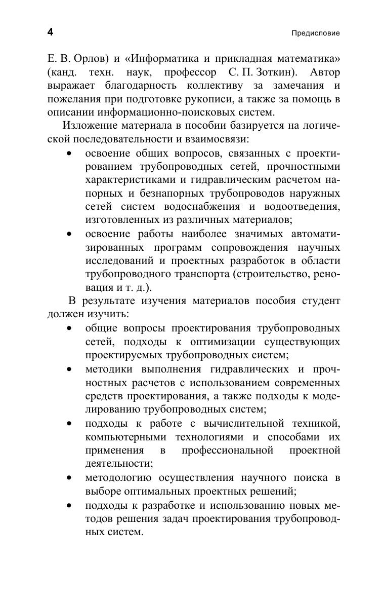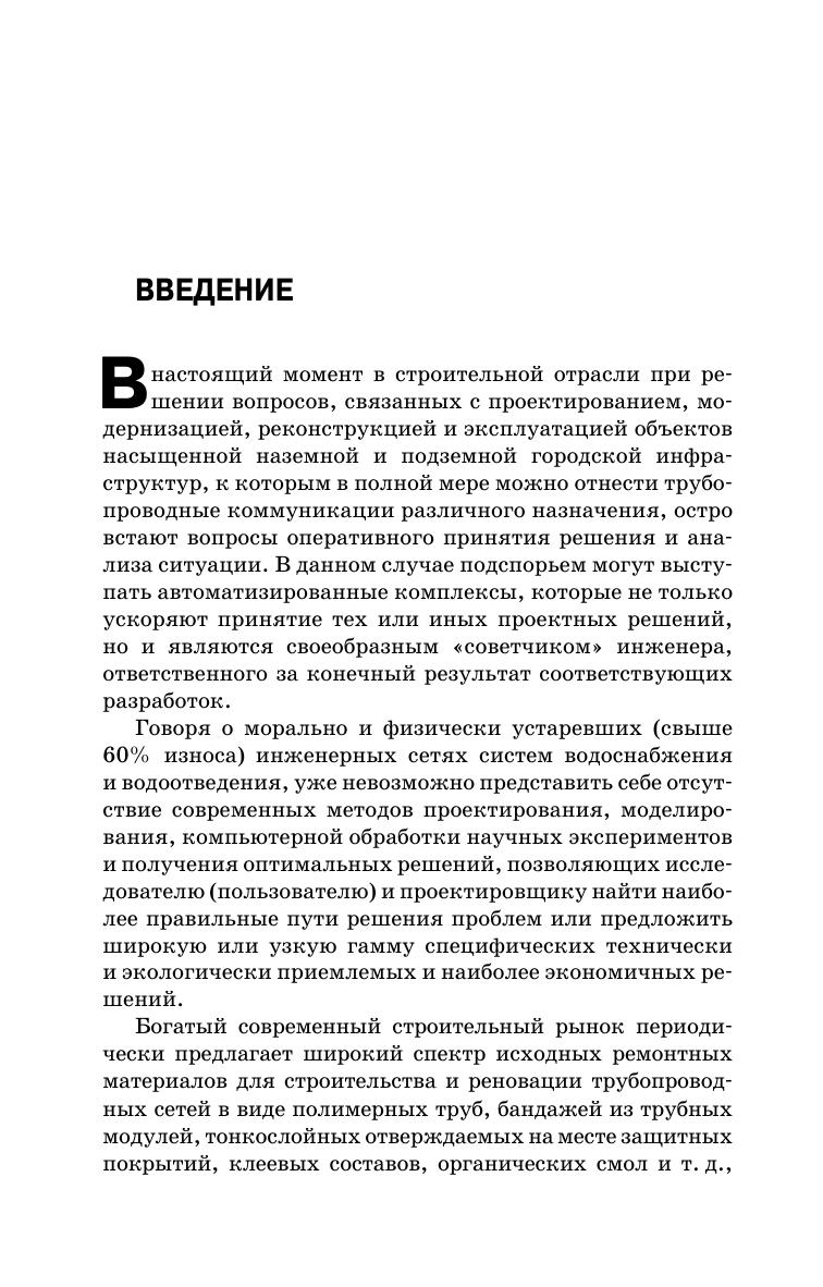 В учебном пособии представлены сведения о трубах, используемых в системах городского водоснабжения и водоотведения, методах гидравлического расчета напорных и безнапорных трубопроводных сетей, а также об автоматизированных программах сопровождения научных исследований и проектных разработок по ряду актуальных аспектов, связанных со стратегией и тактикой восстановления трубопроводных сетей и их эффективной работы. Приведены результаты гидравлических, прочностных, экономических и других расчетов, полученных при эксплуатации компьютерных программных комплексов, которые позволяют при проектировании новых и реконструкции старых трубопроводных сетей провести анализ ситуации и выбрать наиболее приемлемые варианты строительства или реновации трубопроводного транспорта. Соответствует современным требованиям Федерального государственного образовательного стандарта среднего профессионального образования и профессиональным квалификационным требованиям. Учебное пособие предназначено для учащихся средних специальных учебных заведений, обучающихся по специальности «Водоснабжение и водоотведение».