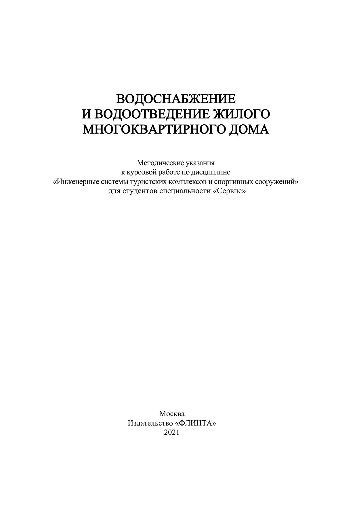 Для студентов специальности 43.03.01 «Сервис», профиль подготовки «Сервис инженерных систем гостинично-туристских комплексов и спортивных сооружений».