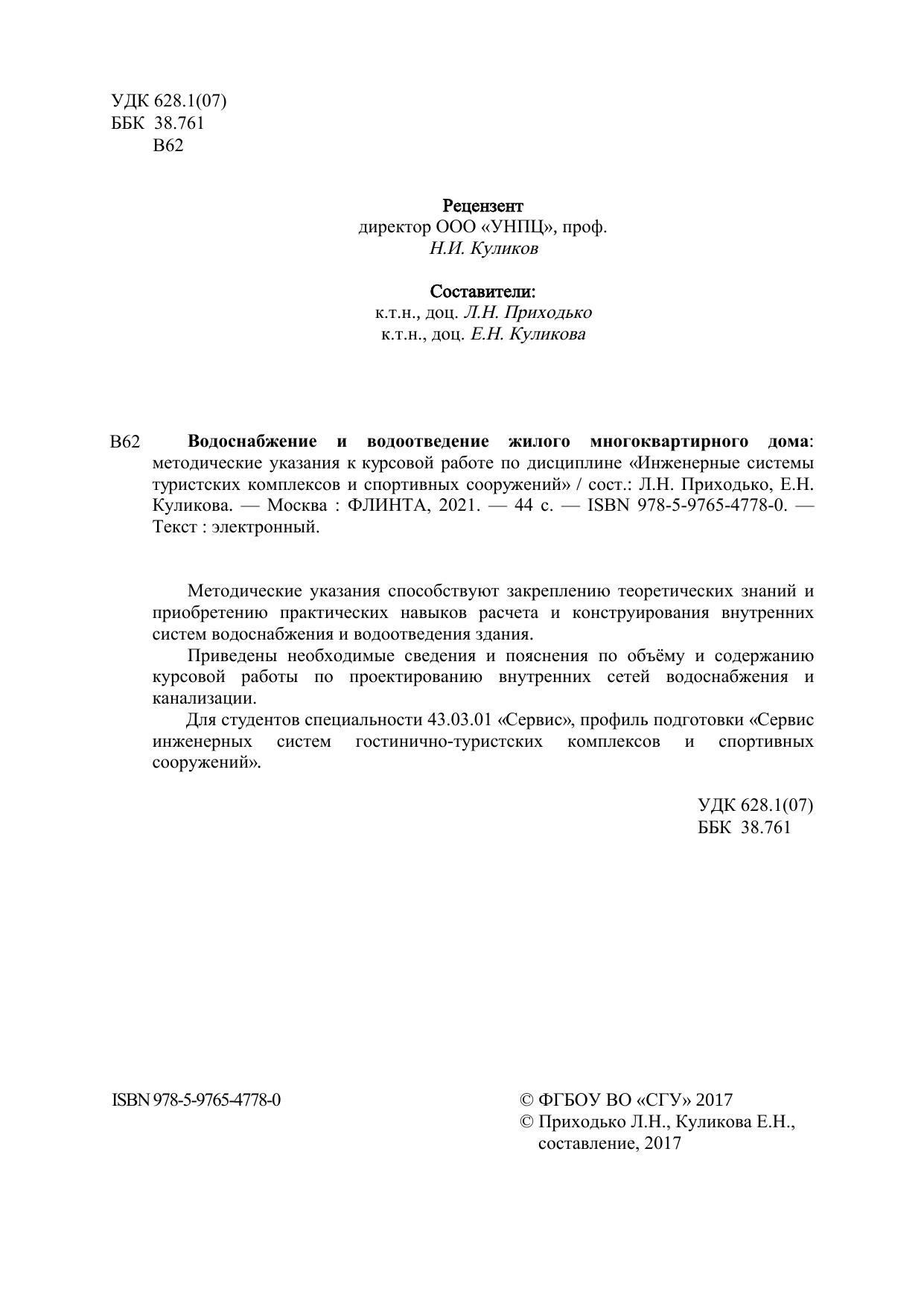 Методические указания способствуют закреплению теоретических знаний и приобретению практических навыков расчета и конструирования внутренних систем водоснабжения и водоотведения здания.