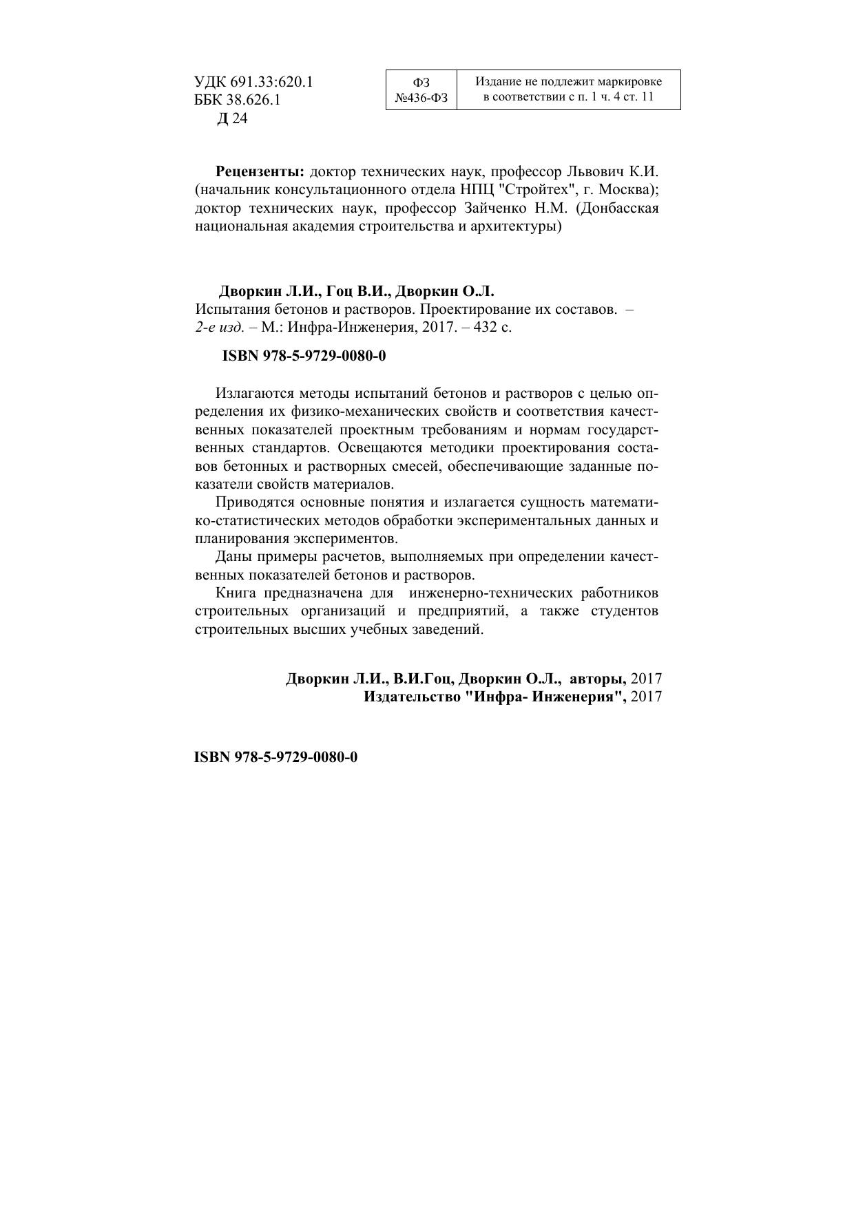 Авторы: Дворкин Л.И., Гоц В.И., Дворкин О.Л.