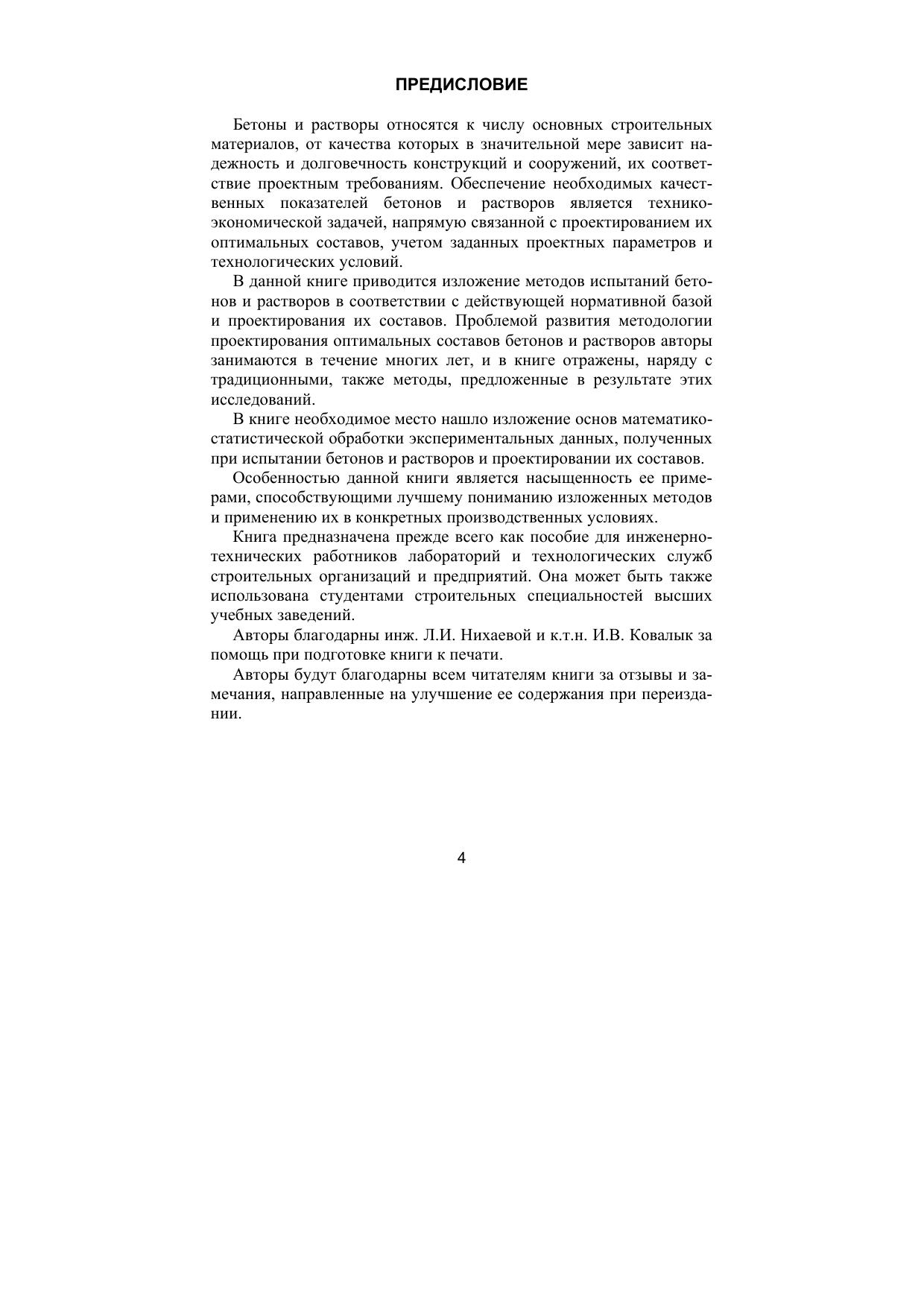 планирования экспериментов. Даны примеры расчетов, выполняемых при определении качественных показателей бетонов и растворов. Книга предназначена для инженерно-технических работников строительных организаций и предприятий, а также студентов строительных высших учебных заведений.