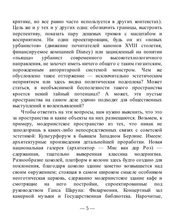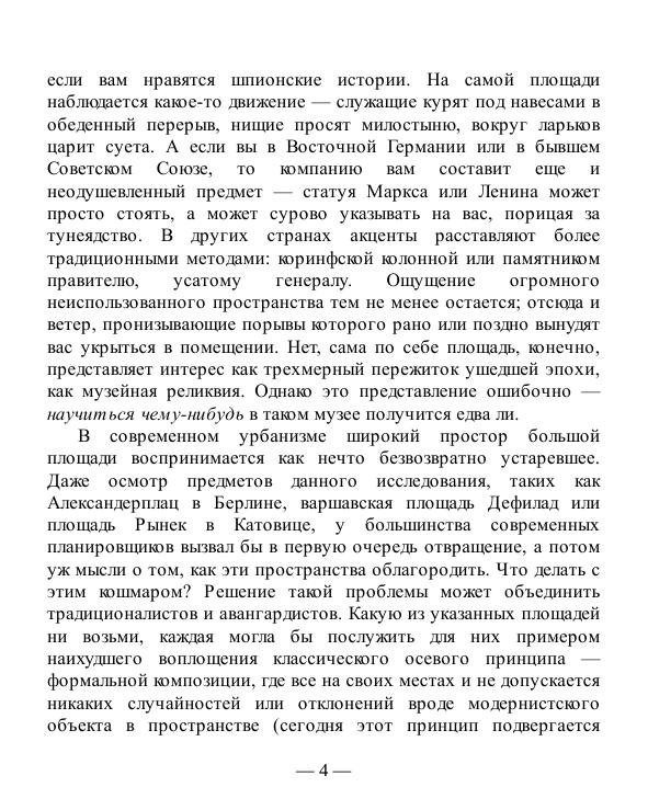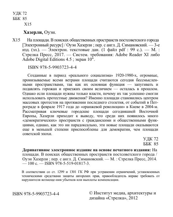 Созданные в период «реального социализма» 1920-1980-х, огромные, пронизываемые всеми ветрами площади считаются сегодня бессмысленными пространствами, так как их основная функция — запугивать и подавлять горожан и приезжих своим величием — осталась в прошлом. Однако если площади нужны только власти, почему их так успешно смогли использовать протестные движения? Именно площади становились центром массовых протестов на протяжении последнего столетия, от событий в Петрограде в феврале 1917 года до «оранжевой революции» в Киеве в 2004-м. Рассматривая ключевые городские площади сегодняшней Восточной Европы, Хазерли приходит к выводу, что среди них появилось много «демократических» пространств с гражданскими и общественными функциями, однако, как это ни парадоксально, эти новые площади оказываются еще в меньшей степени приспособлены для демократии, чем площади советской эпохи.