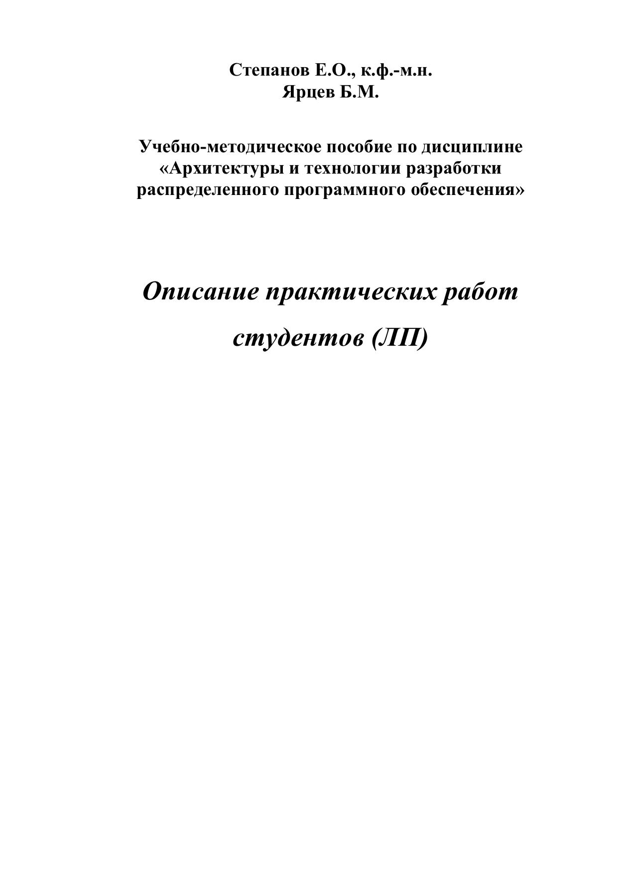 Описание практических работ студентов (ЛП). Учебно-методическое пособие по дисциплине "Архитектуры и технологии разработки распределенного программного обеспечения"