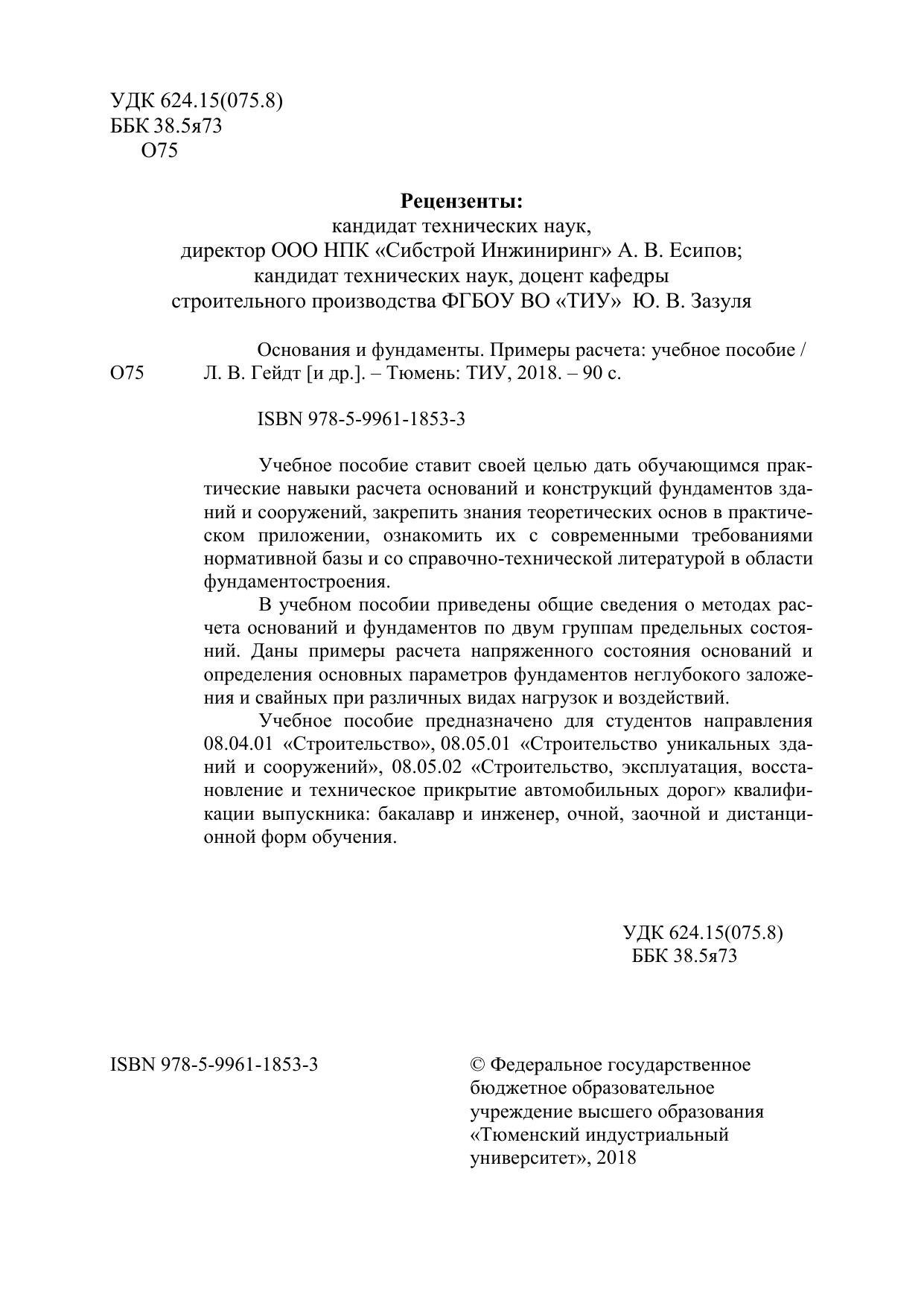 Учебное пособие ставит своей целью дать обучающимся практические навыки расчета оснований и конструкций фундаментов зданий и сооружений, закрепить знания теоретических основ в практическом приложении, ознакомить их с современными требованиями нормативной базы и со справочно-технической литературой в области фундаментостроения.