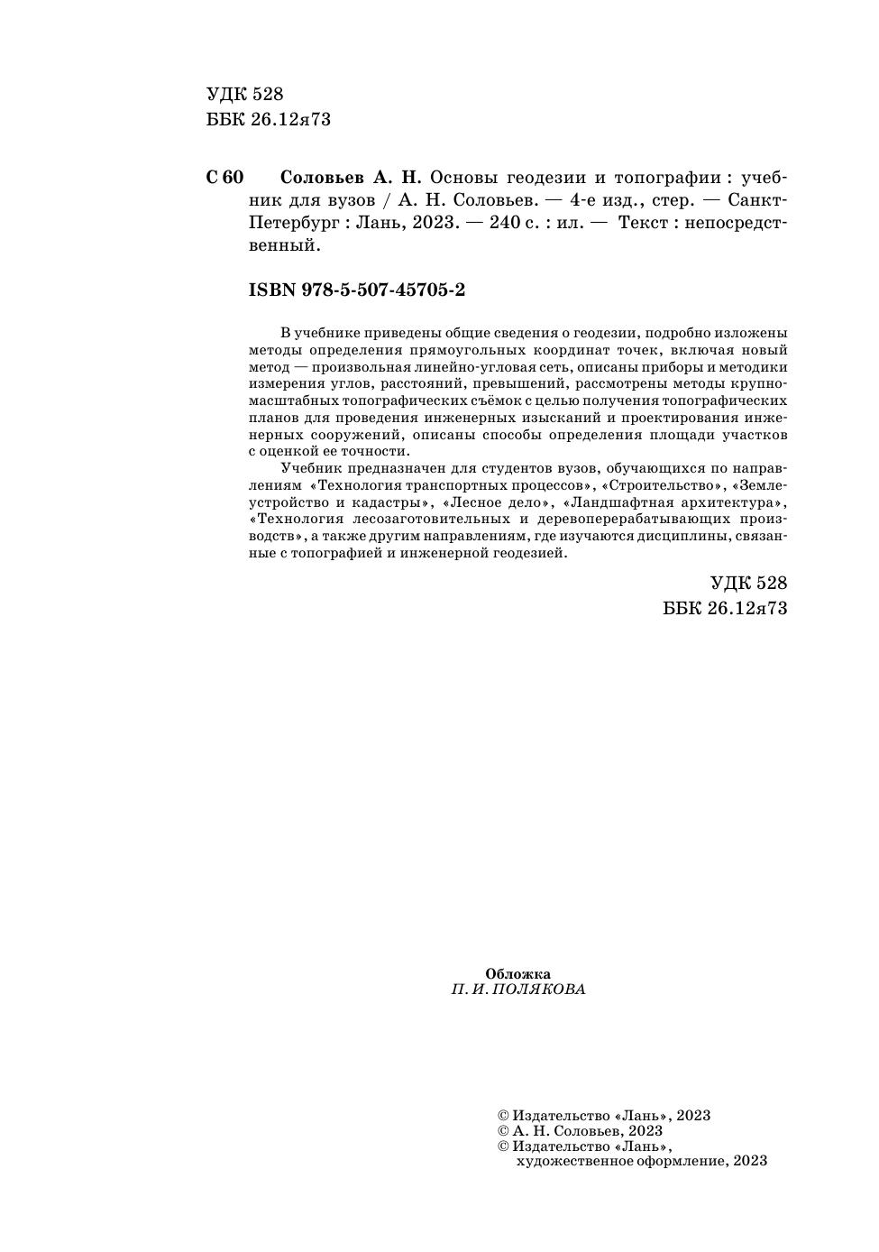 В учебнике приведены общие сведения о геодезии, подробно изложены методы определения прямоугольных координат точек, включая новый метод — произвольная линейно-угловая сеть, описаны приборы и методики измерения углов, расстояний, превышений, рассмотрены методы крупномасштабных топографических съёмок с целью получения топографических планов для проведения инженерных изысканий и проектирования инженерных сооружений, описаны способы определения площади участков с оценкой её точности. Учебник предназначен для студентов, обучающихся по направлениям «Технология транспортных процессов», «Строительство», «Землеустройство и кадастры», «Лесное дело», «Ландшафтная архитектура», «Технология лесозаготовительных и деревоперерабатывающих производств», а также другим направлениям, где изучаются дисциплины, связанные с топографией и инженерной геодезией.