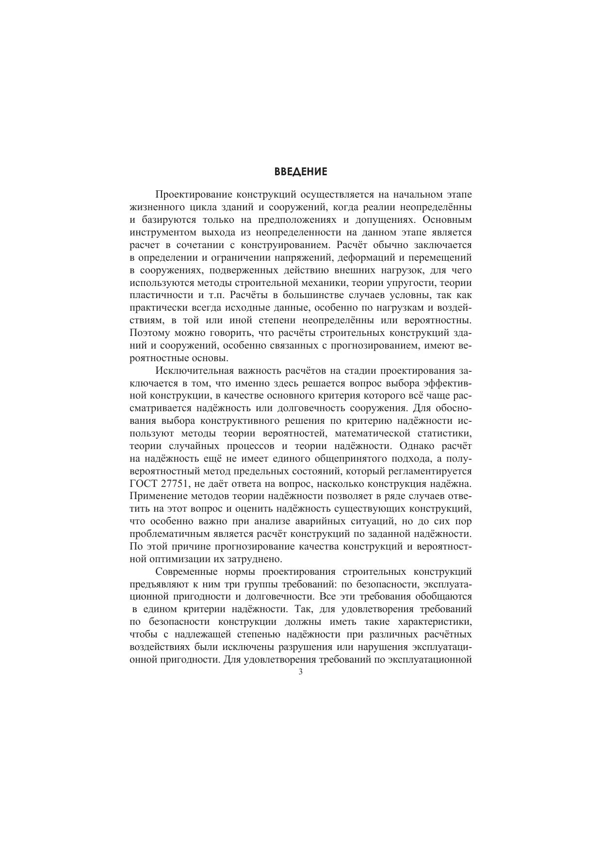 Изложены методы учета изменчивости исходных параметров при расчете конструкций зданий и сооружений, принципы нормирования и оценки надежности. Приведены данные о вероятностных моделях нагрузок и воздействий, а также об изменчивости свойств основных строительных материалов. Помещены результаты авторских исследований в области надежности строительных конструкций.