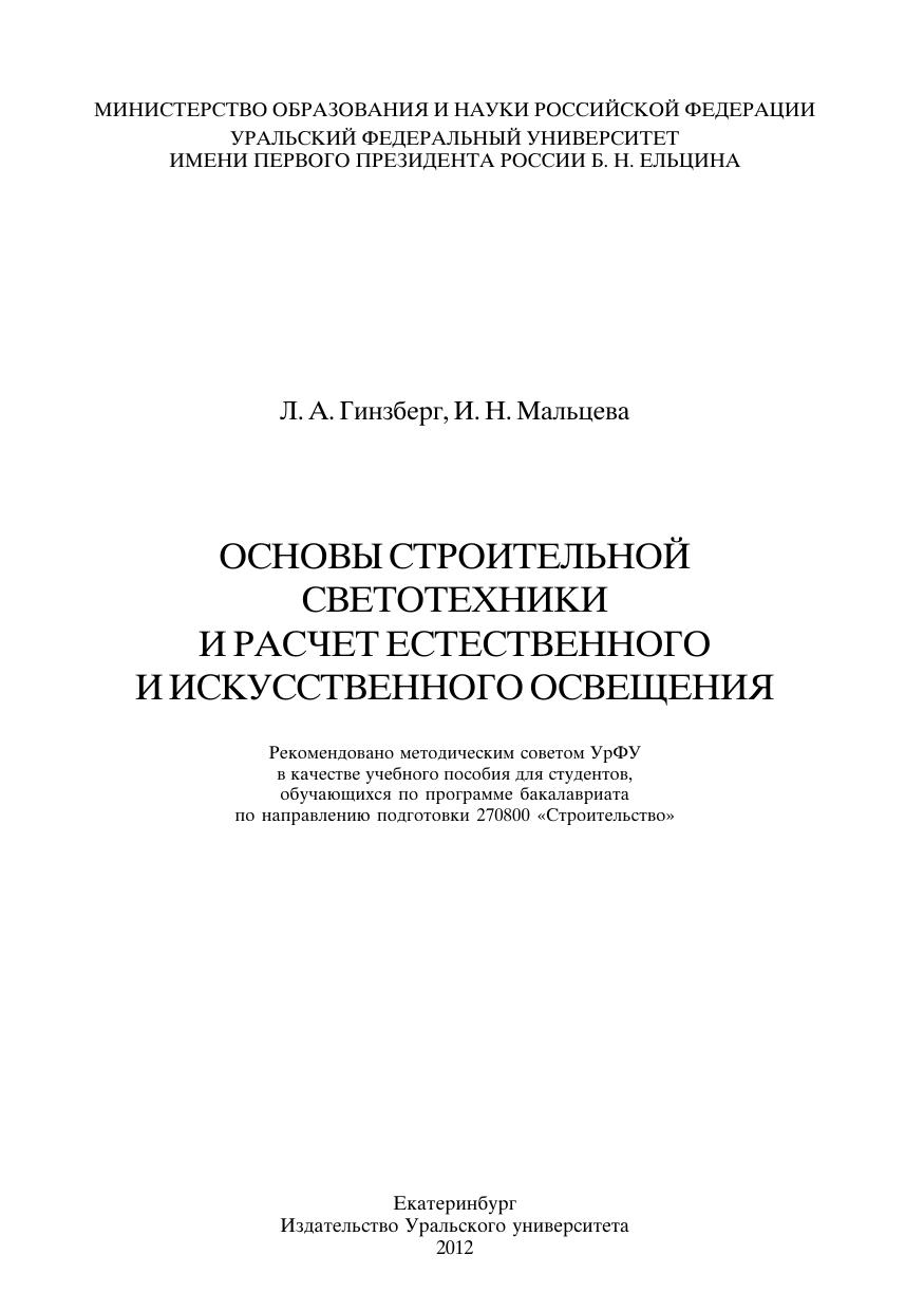 Основы строительной светотехники и расчет естественного и искусственного освещения: учеб. пособие