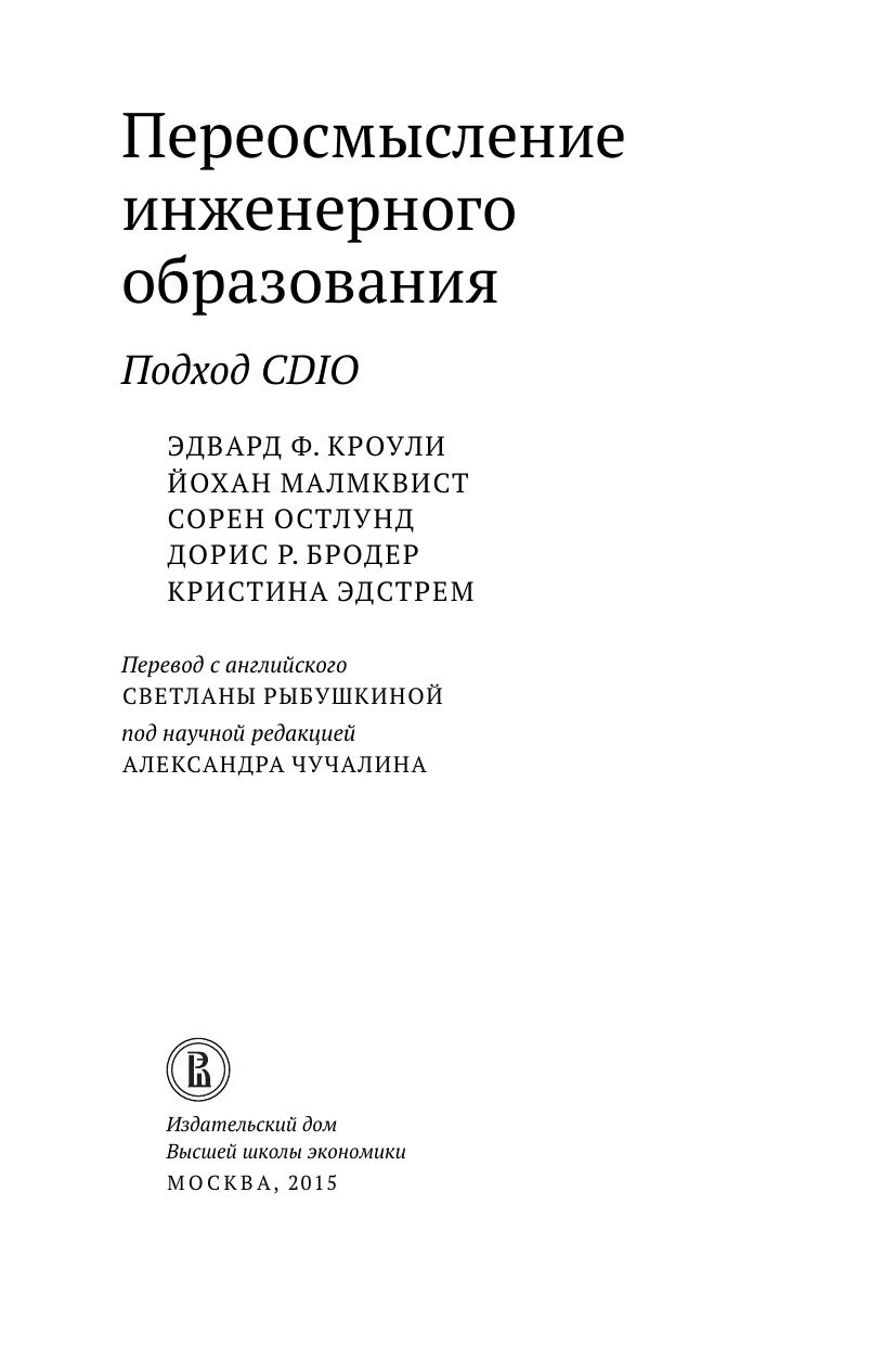В книге рассматривается подход к инженерному образованию, который интегрирует личностные, межличностные и профессиональные навыки с дисциплинарными техническими знаниями с целью подготовить инженера, способного к инновациям и предпринимательству. Инженерное образование ставится в контекст инженерной деятельности, которая включает планирование, проектирование, производство и применение (Conceiving, Designing, Implementing, and Operating — CDIO), т.е. полный жизненный цикл инженерных процессов, продуктов и систем. Кроме того, описываются разработка и применение модели CDIO. Настоящее издание является руководством по улучшению образовательных программ для подготовки молодых инженеров во всем мире.
