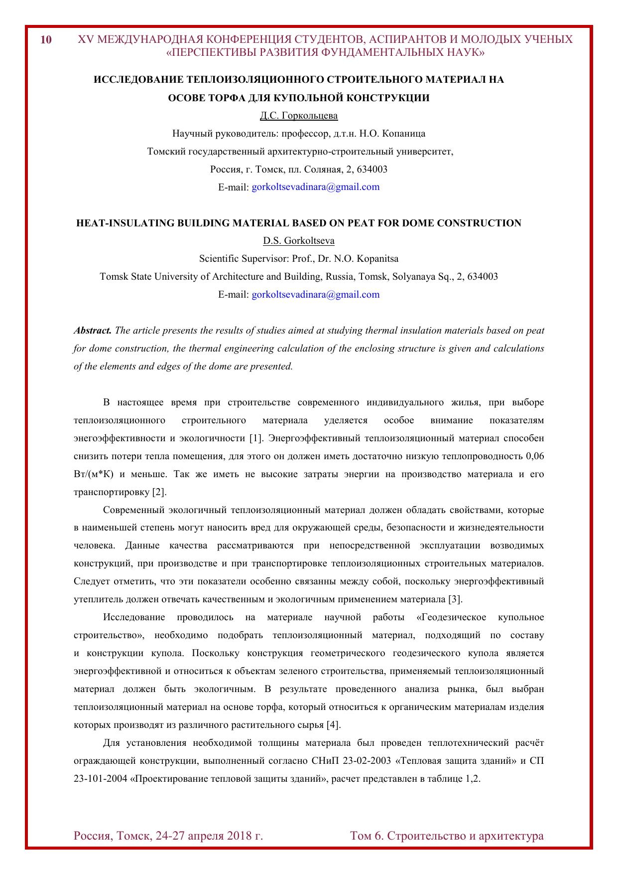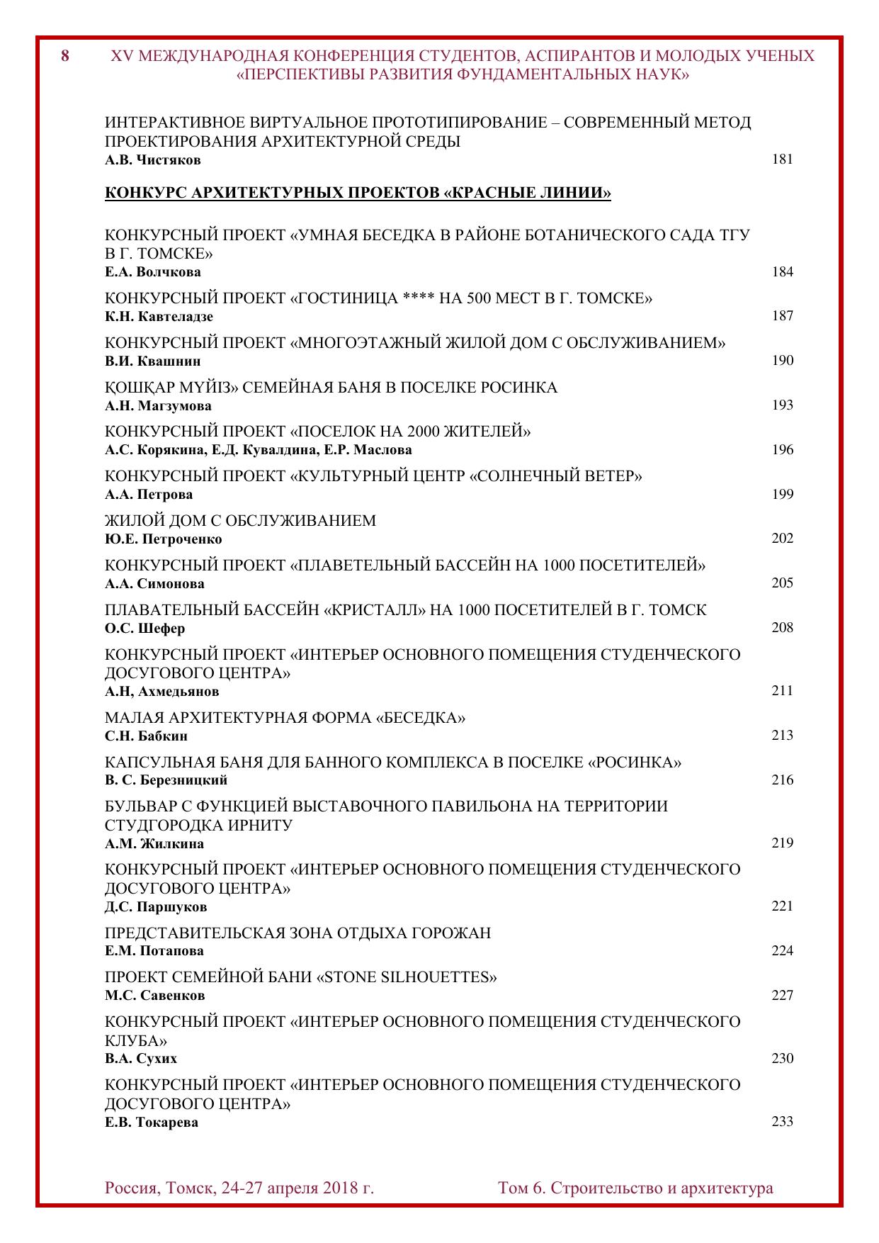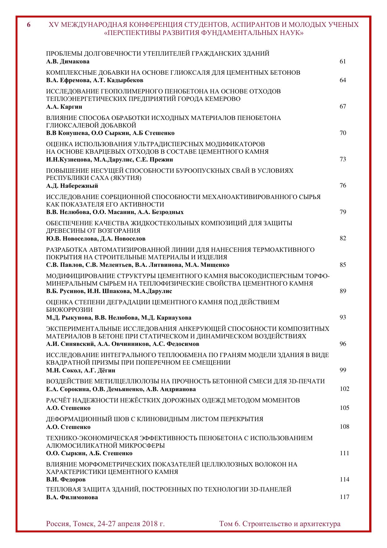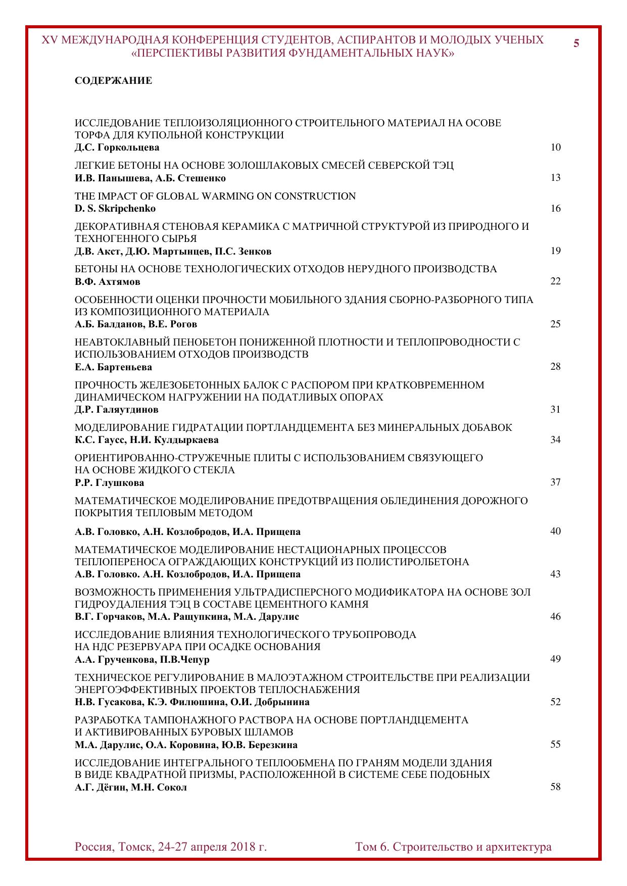 Сборник содержит труды участников XV Международной конференции студентов, аспирантов и молодых учёных «Перспективы развития фундаментальных наук», представленные на секции «Строительство и архитектура». Для студентов, аспирантов, молодых ученых и преподавателей, специализирующихся в области технологии строительства, строительных материалов, изделий и конструкций, нанотехнологий в строительстве, электротехники и электромеханики, машиноведения и механики, инженерной геологии, методики архитектурного проектирования, теории и истории архитектуры, реставрации и реконструкции архитектурного наследия, а также дизайна архитектурной среды.