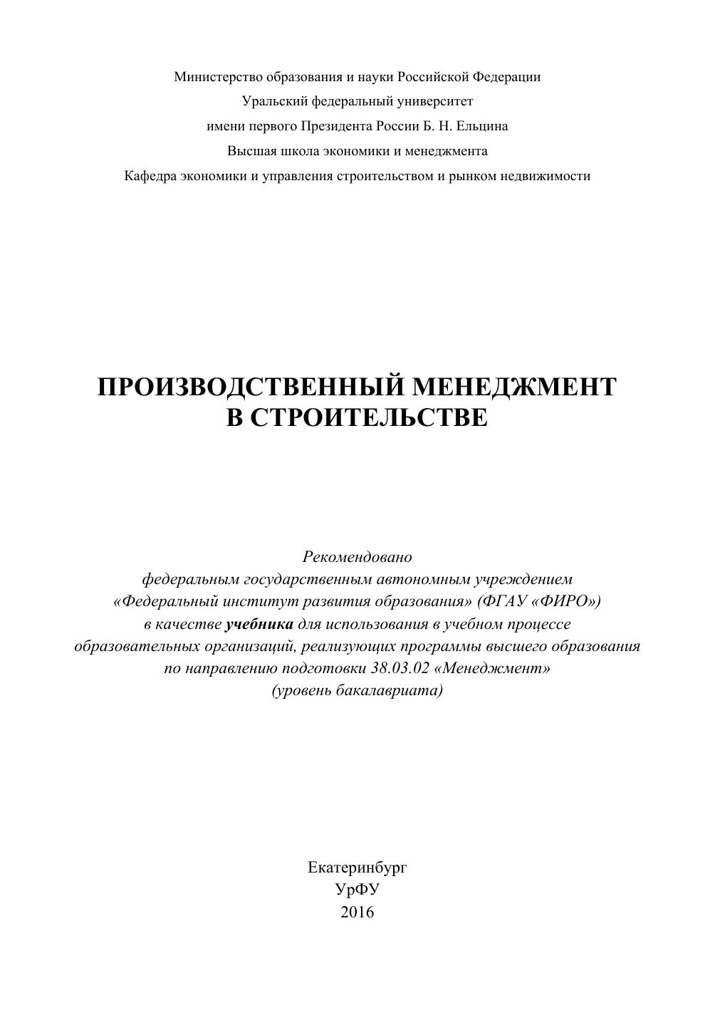 Производственный менеджмент в строительстве: учебник