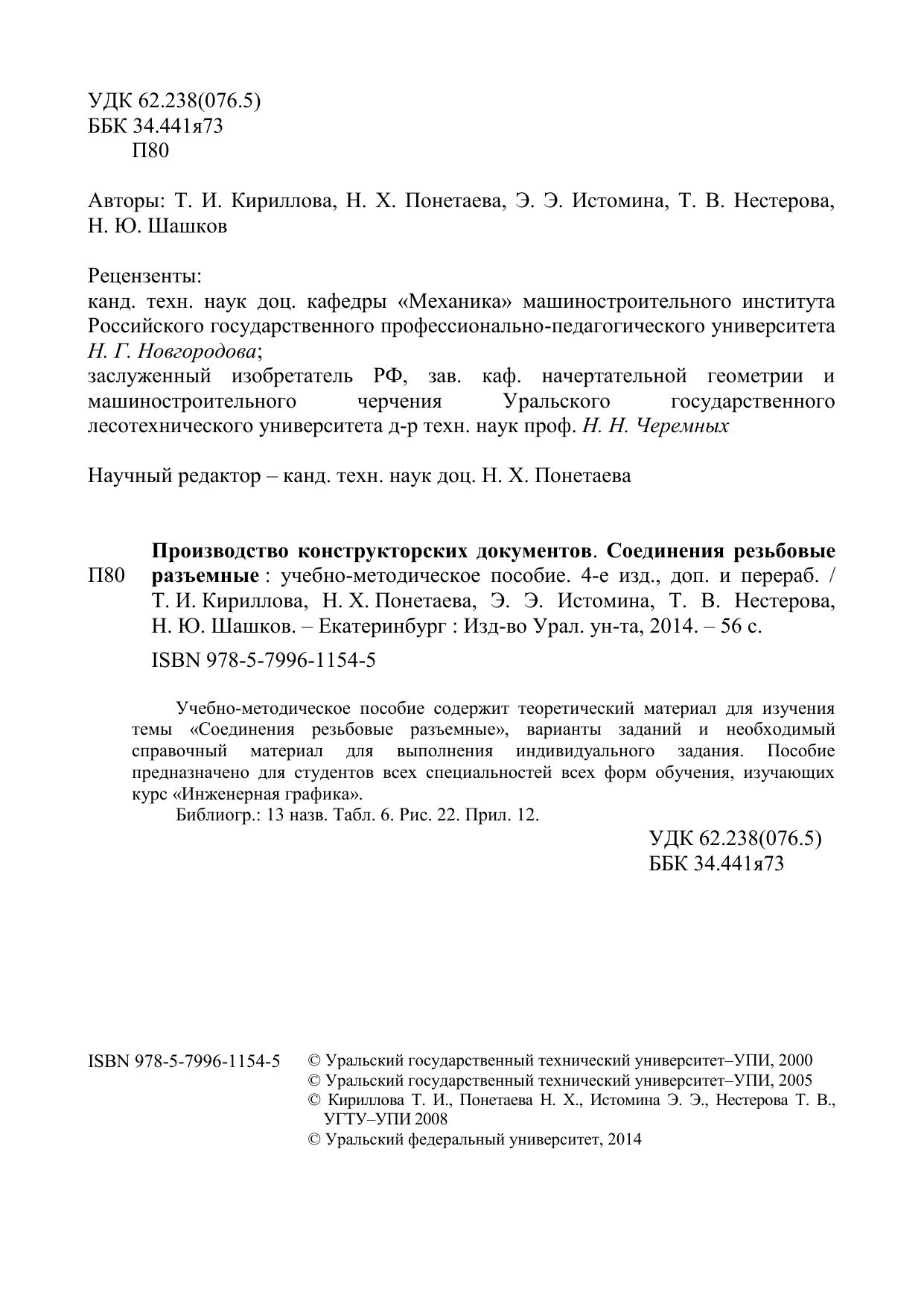 Производство конструкторских документов. Соединения резьбовые разъемные: учебно-методическое пособие. 4-е изд., доп. и перераб.