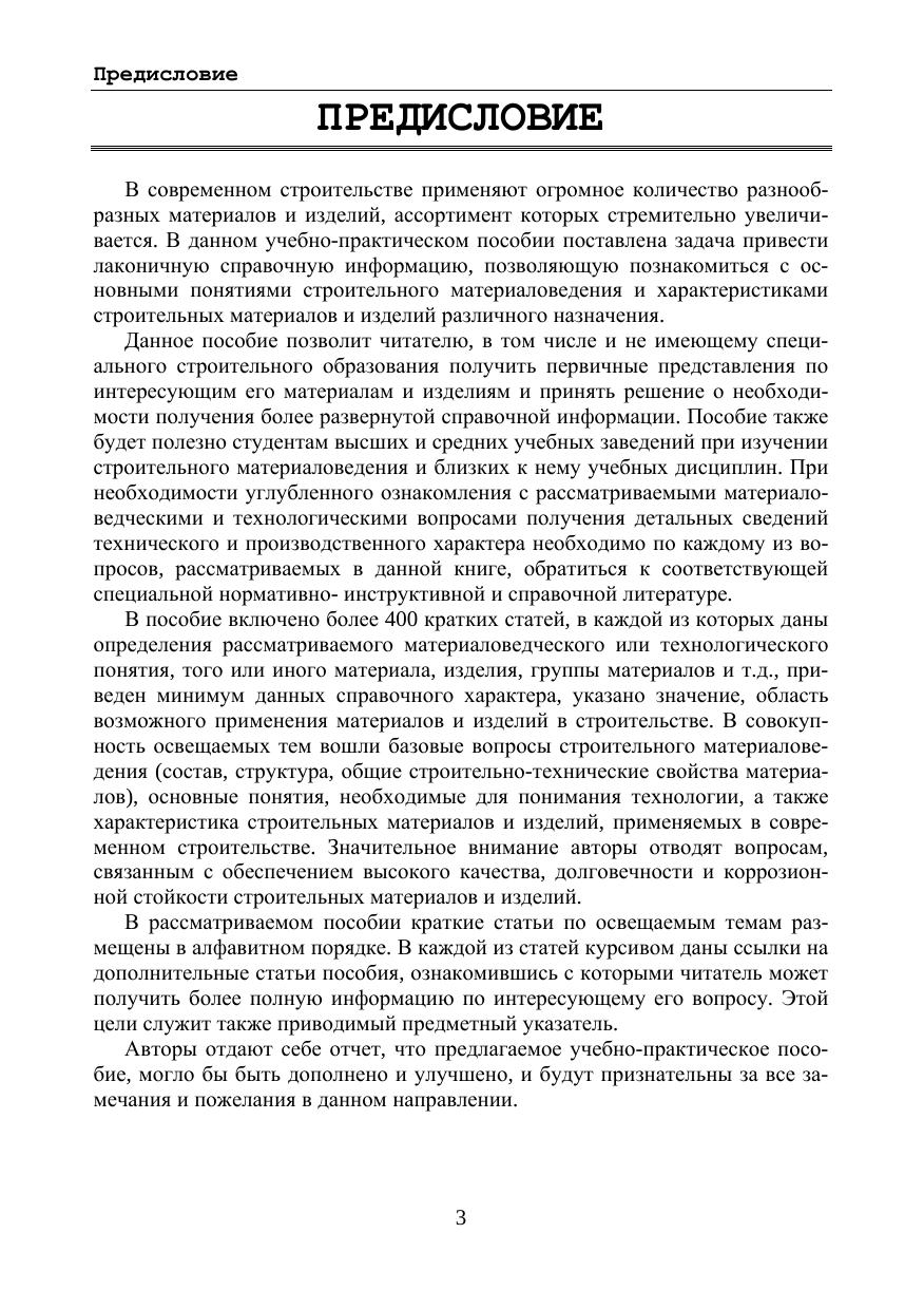 В учебно-практическом пособии приведен краткий обзор основных материалов и изделий, применяемых в современном строительстве, а также освещена сущность понятий и терминов, широко используемых в строительном материаловедении. Приведены наиболее важные справочные данные, характеризующие состав и свойства строительных материалов и изделий, область их рационального применения. Рассмотрены общие вопросы технологии строительных материалов и изделий, их надежности и долговечности. Учебно-практическое пособие предназначено для широкого круга читателей - потребителей строительных материалов и изделий, а также студентов высших и средних специальных учебных заведений.