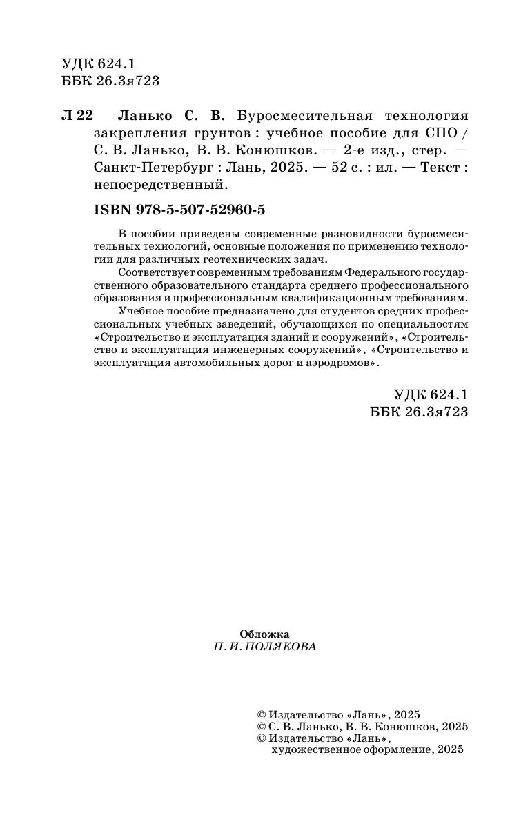 В пособии приведены современные разновидности буросмесительных технологий, основные положения по применению технологии для различных геотехнических задач. Учебное пособие предназначено для студентов средних профессиональных учебных заведений, обучающихся по специальностям «Строительство и эксплуатация зданий и сооружений», «Строительство и эксплуатация инженерных сооружений», «Строительство и эксплуатация автомобильных дорог и аэродромов». Соответствует современным требованиям Федерального государственного образовательного стандарта среднего профессионального образования и профессиональным квалификационным требованиям.