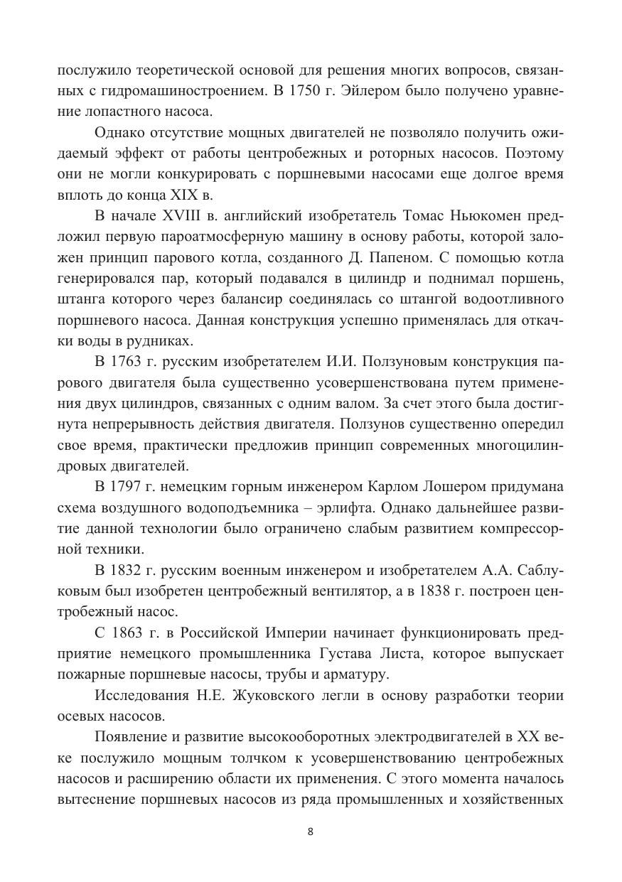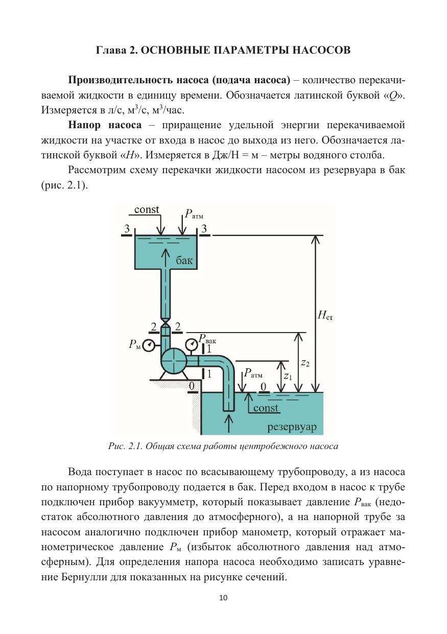 Описаны различные типы насосного оборудования, показано их устройство и изложен принцип действия. Приведена классификация и определены преимущественные области применения насосов. Рассмотрены основные параметры и рабочие характеристики центробежных насосов, представлены зависимости для их расчета. Освещены вопросы подобия и влияния геометрии рабочего колеса на параметры насоса. Показаны основные способы регулирования работы насоса для увеличения области его использования, а также методы пуска в работу. Для проектирования станций рассмотрены варианты совместной работы насосов по параллельной и последовательной схеме.