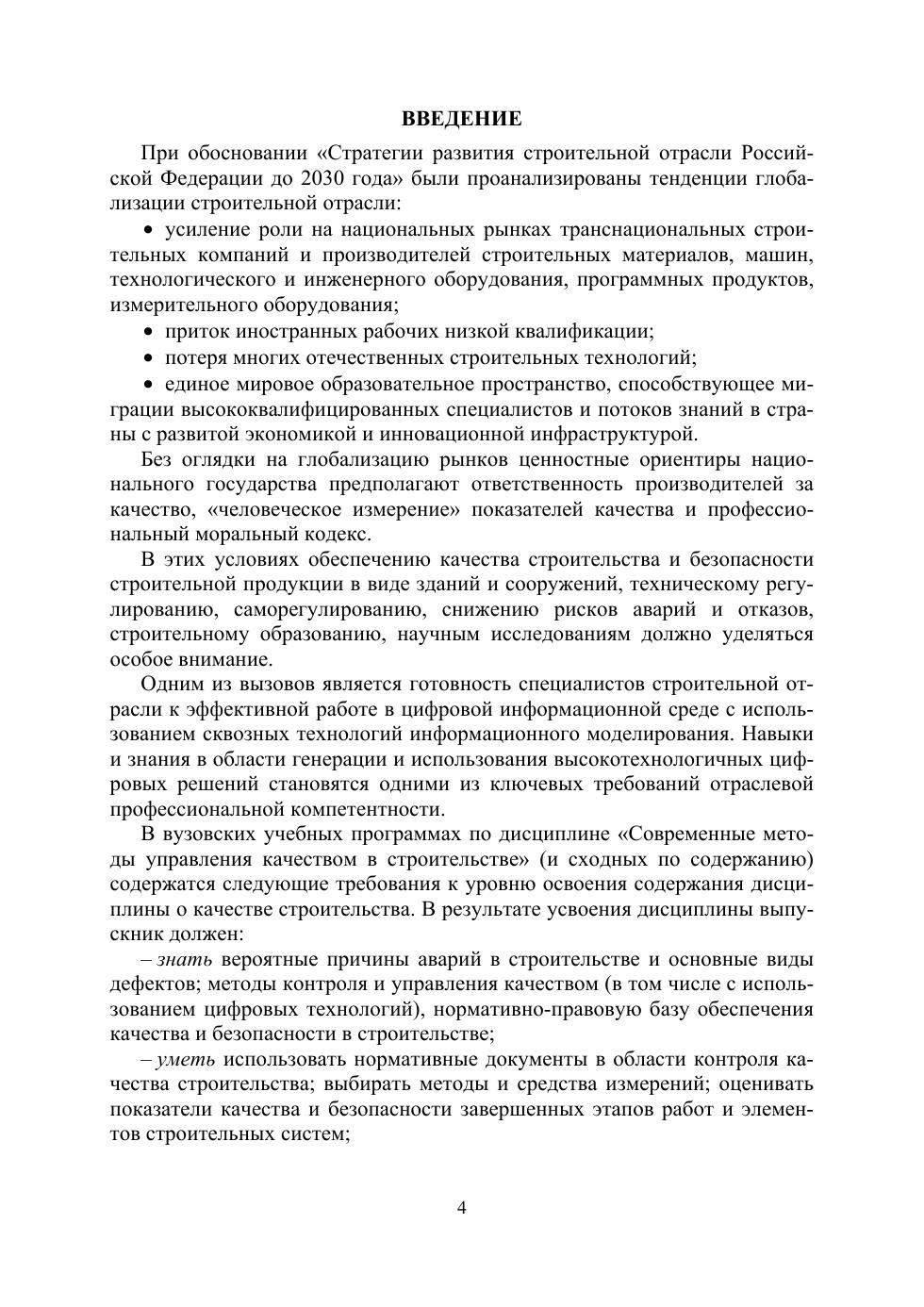 В учебном пособии рассмотрены аварии и дефекты в строительстве, организация строительного контроля, международная концепция менеджмента качества, изложены методы контроля и оценки качества, вопросы надежности и безопасности. В пособии кратко описана нормативно-правовая база обеспечения качества строительства, дано понятие о статистическом методе приемочного контроля. Отдельный раздел посвящен методам автоматизированного строительного контроля. Учебное пособие предназначено для студентов высших учебных заведений, обучающихся по направления подготовки «Строительство» и «Строительство уникальных зданий и сооружений» всех форм обучения, а также для слушателей курсов повышения квалификации и профессиональной переподготовки.