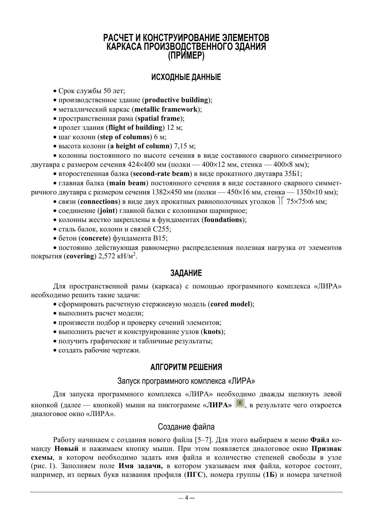 В учебно-методическом пособии изложен пример расчета и конструирования элементов каркаса одноэтажного производственного здания с помощью программного комплекса «ЛИРА». Рассмотрена последовательность компьютерного моделирования и показана возможность создания рабочих чертежей. Сделан подбор сечений элементов и выполнены проверки по предельным состояниям. Показана визуализация графических и табличных результатов. Пособие предназначено для студентов строительных специальностей высших учебных заведений и работников проектных организаций.